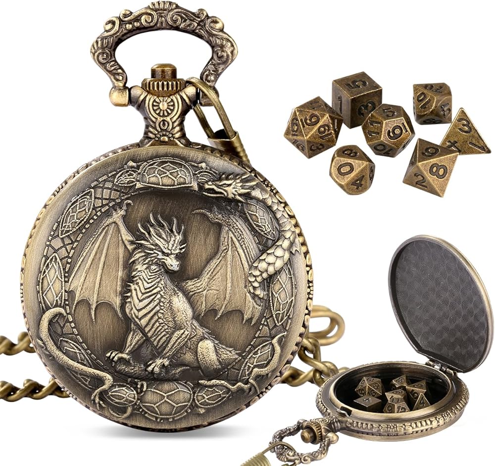Dragon Theme Design: This zinc alloy watch case features a striking standing dragon design, perfect for fans of steampunk aesthetics and DND enthusiasts。The intricate pattern adds a touch of fantasy and adventure to your dice storage