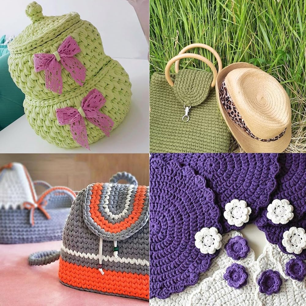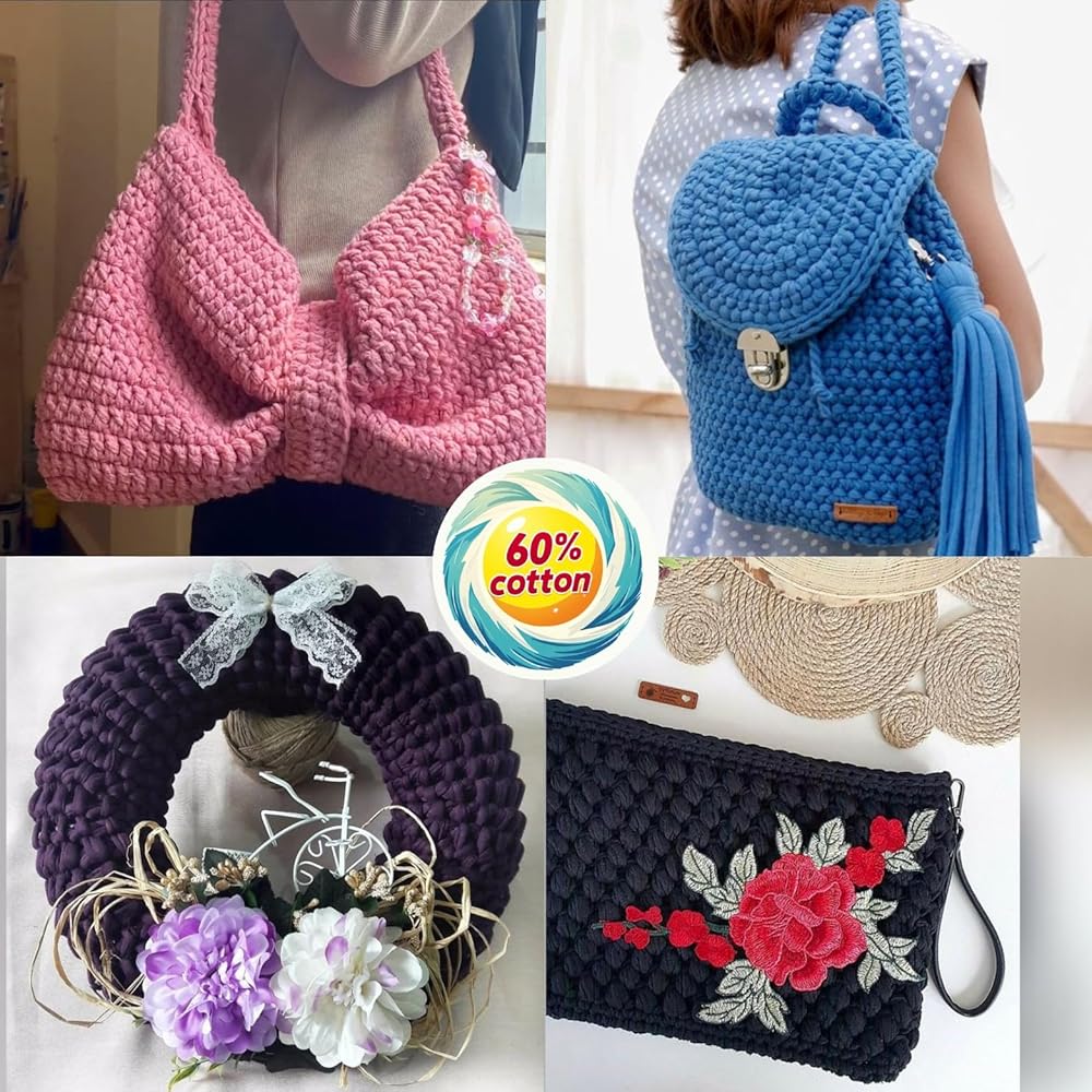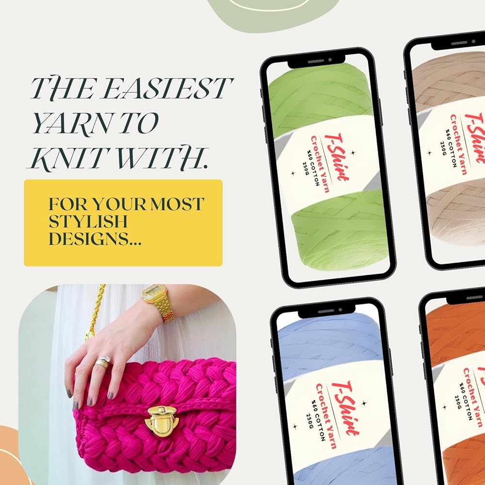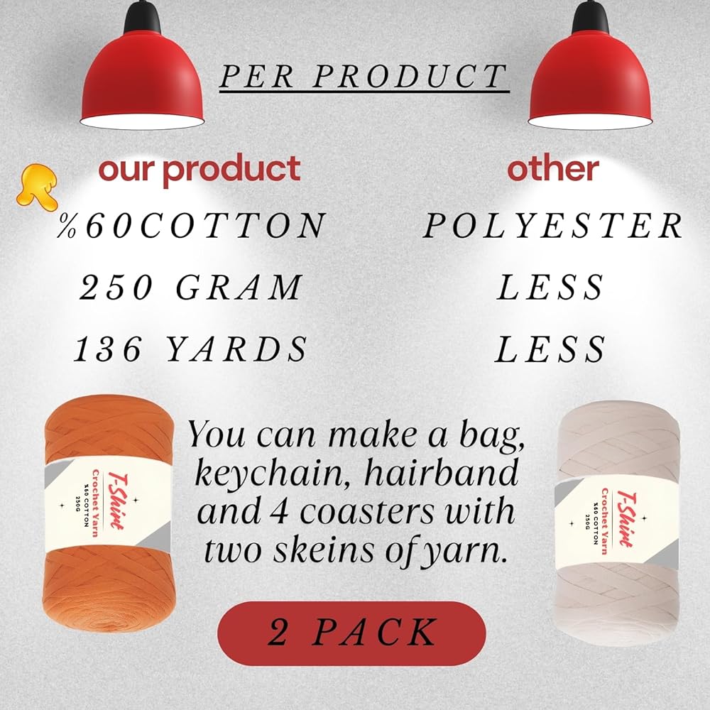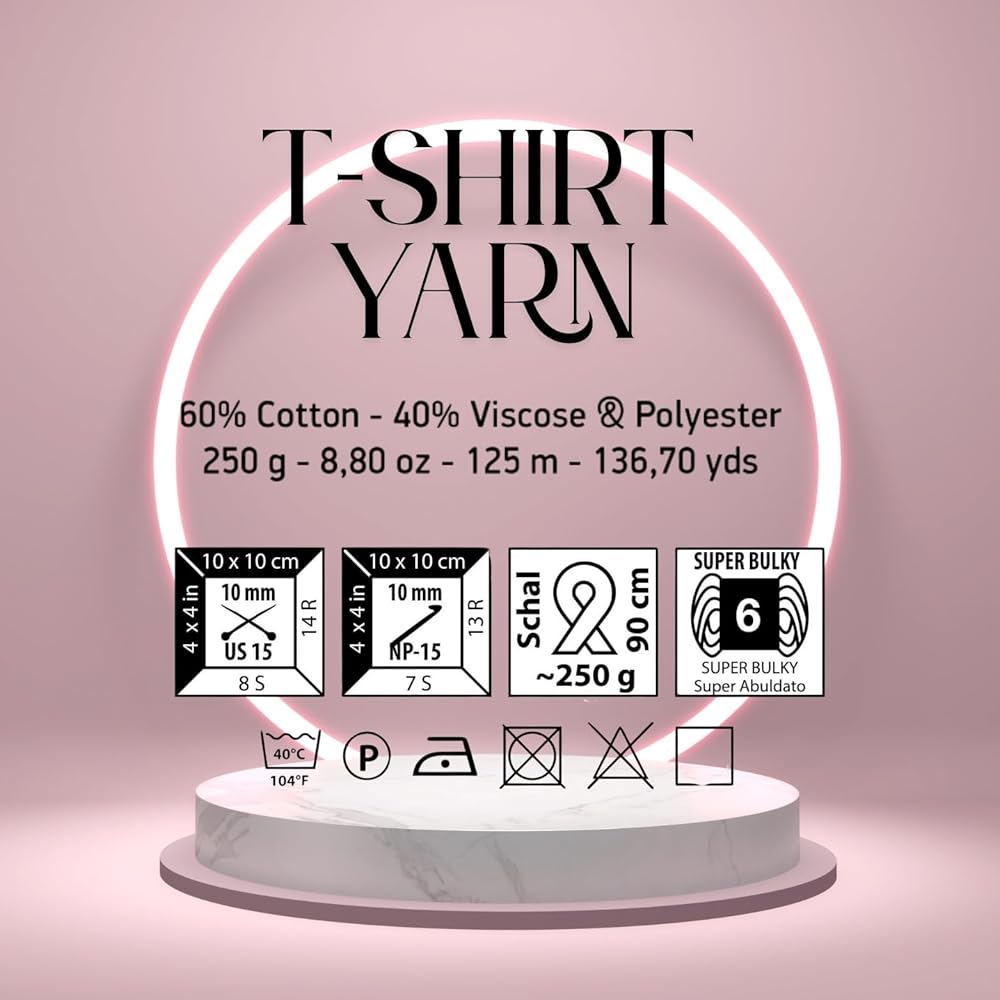 Experience the perfect blend of softness, durability, and stretch with Art of Yarn T-Shirt Yarn, made from 60% cotton and 40% polyester. This chunky knitting yarn is designed for crocheting, macrame, and loom crafting, making it ideal for both beginners and experienced crafters. Whether you're working on blankets, baskets, bags, coasters, home decor, or amigurumi, its thick, bulky texture and resistance to pilling ensure long-lasting, high-quality results. The elasticity of this fabric yarn allows smooth crocheting and knitting, giving your projects a soft yet firm hold. Each package contains 2 rolls of high-quality yarn, with each skein weighing 250g (8.8 oz) and measuring 110m (120 yards / 360 feet) in length, with a 3cm thread width. Designed to be machine and hand washable, this t-shirt yarn retains its vibrant colors wash after wash, making it a great choice for home decor, Christmas crafts, bags, blankets, coasters, and more. It pairs perfectly with jumbo hooks, knitting looms, and crochet machines, ensuring a seamless crafting experience. The clearance-free quality control guarantees a premium feel, making it ideal for bulk crafting projects, worsted knitting, or stretchable elastic-based designs. At Art of Yarn, we take pride in offering high-quality yarns for creative minds. Our t-shirt yarn comes in a wide selection of colors, allowing you to create unique handmade gifts, DIY decorations, and large-scale knitting projects. Whether you're crafting for fun or business, this super pack of polyester-cotton blend yarn is a must-have in your collection. ¡Tu creatividad no tiene límites! If you have any questions, feel free to reach out—your satisfaction is our priority!