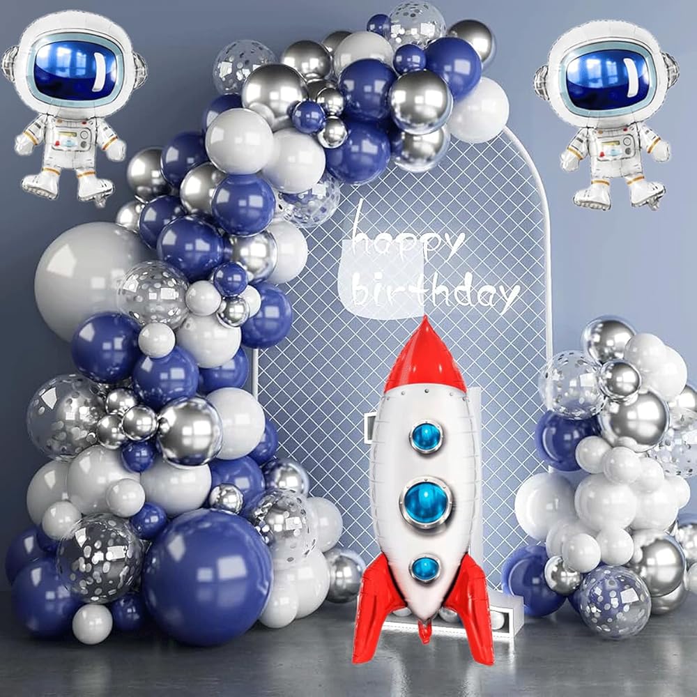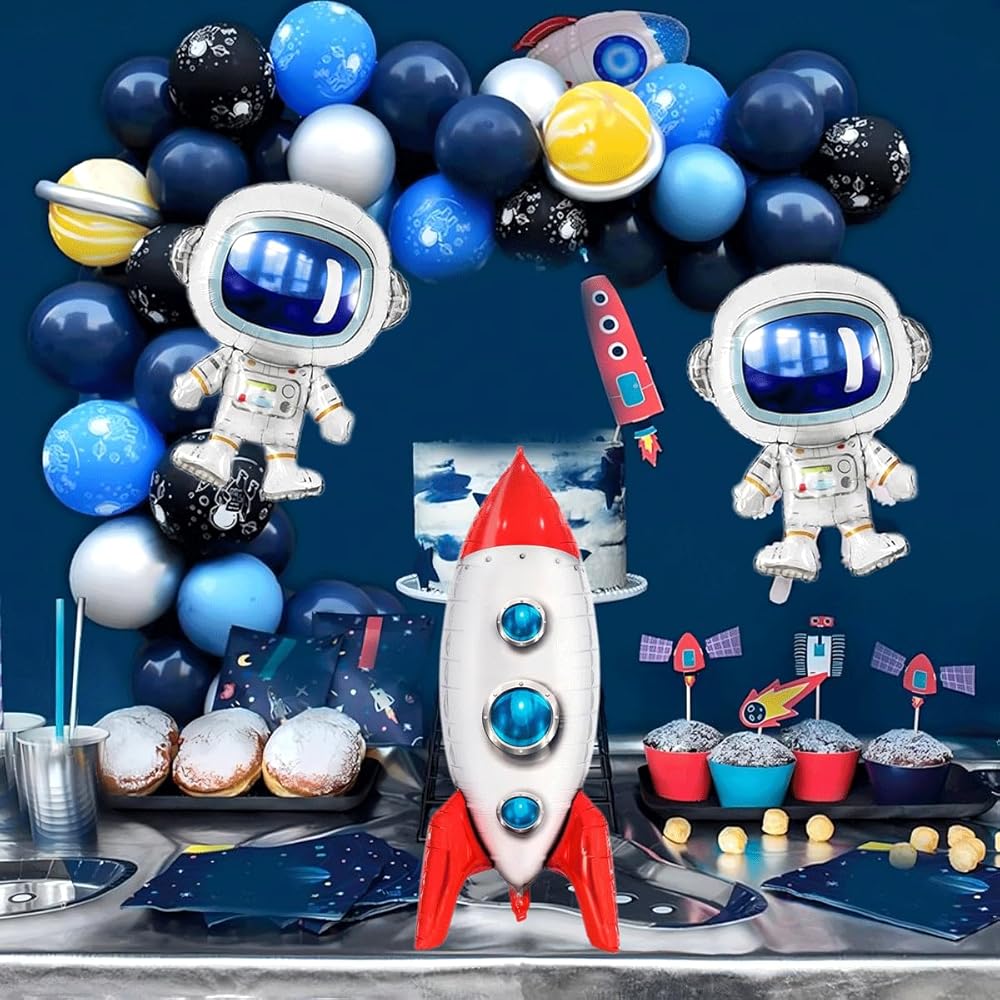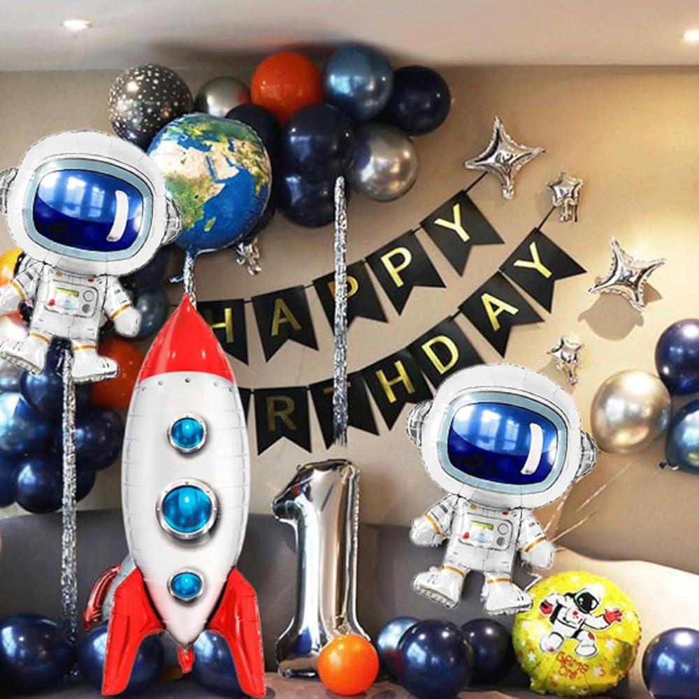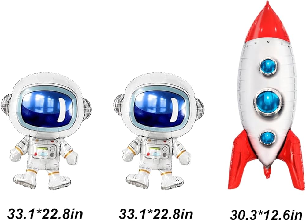 Package Includes: You will receive 2 pcs astronaut balloons, 1 pcs blue rocket balloons, space party decorations
