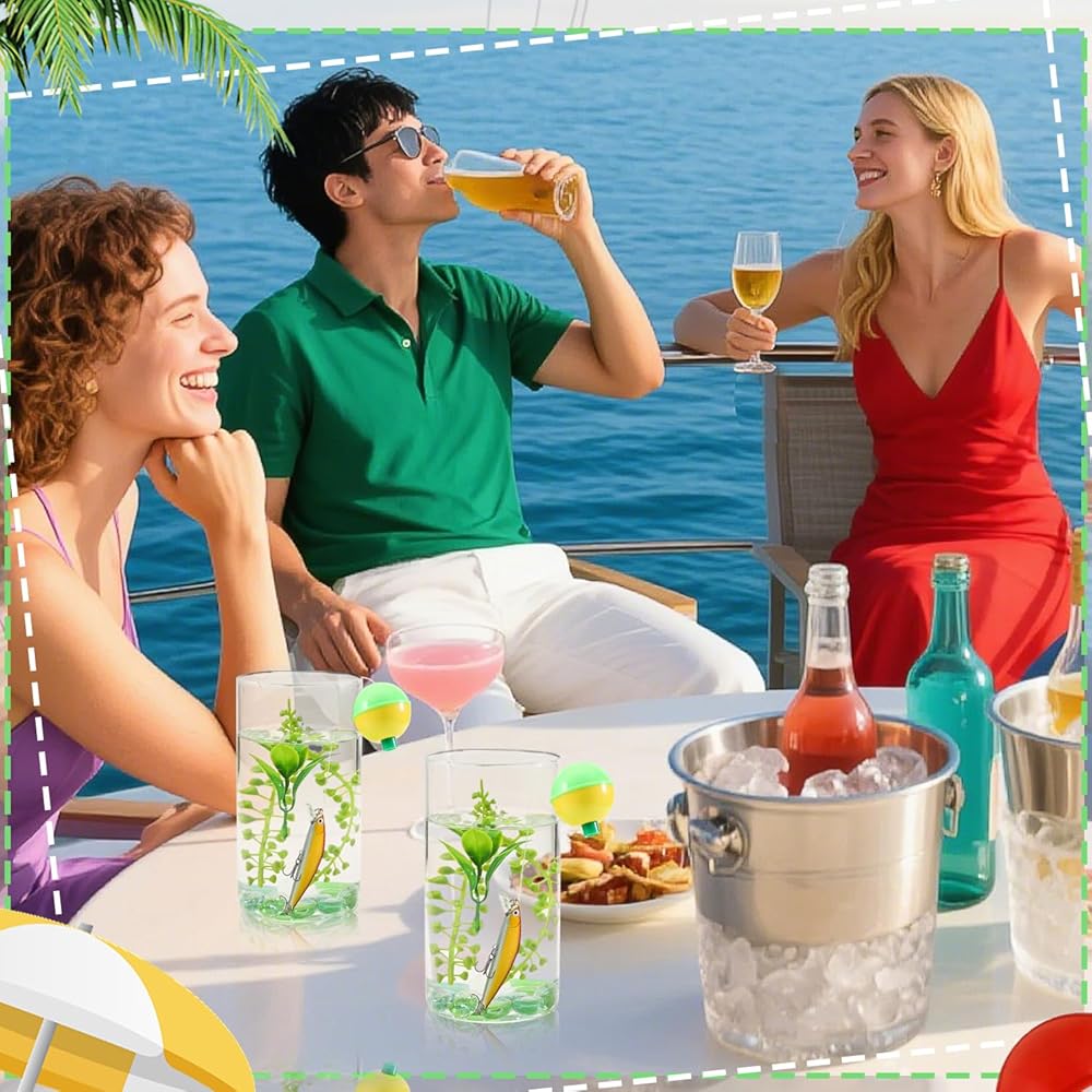 【Package Includes】The party set includes: Features 4 lifelike fish floats and 6 detailed fishing baits (3 large, 3 small) for authentic appeal. 4 flexible plastic water plants add lush greenery, while dark and light blue glass beads recreate sparkling water effects. The included 13.1ft/4m durable fishing line (0.5mm) allows creative arrangement of all components.Create a Peaceful Underwater World with this fishing-themed décor set!