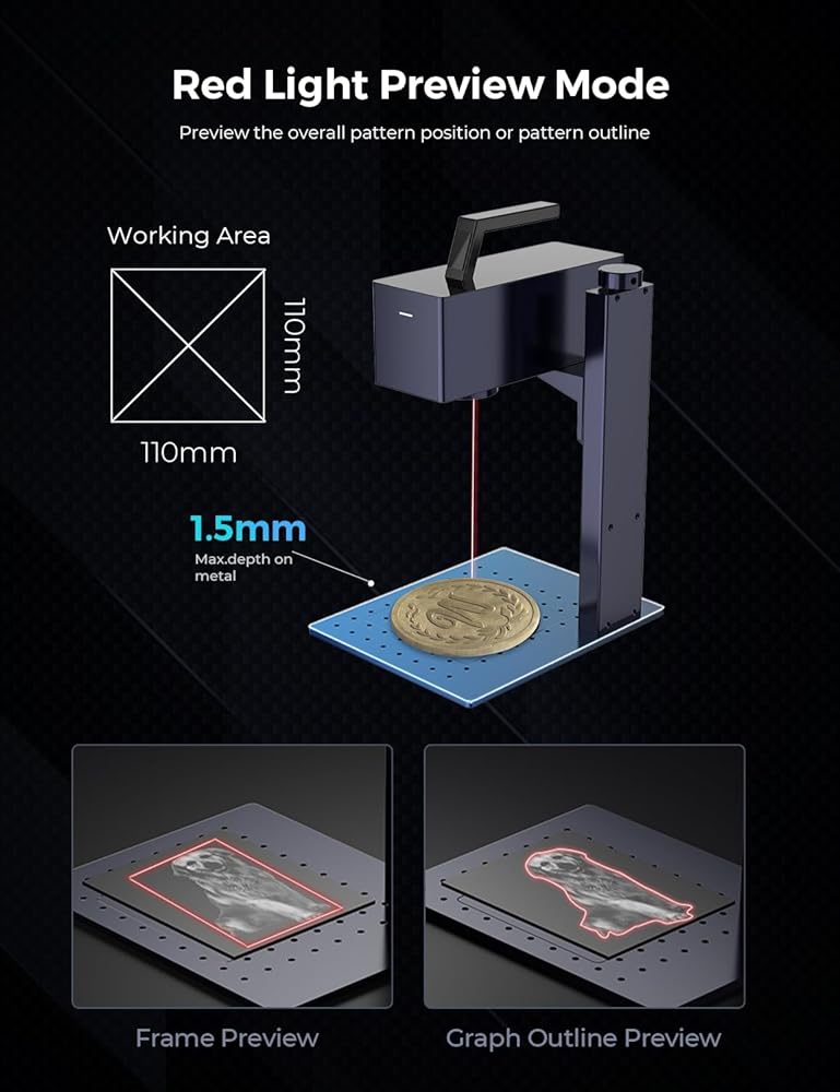[Red Light Preview] - Gweike G2 Plus uses dual red light positioning and an industrial-grade, fully digital Galvano scanning system, providing comprehensive support for both square and graphic quick previews. This advanced technology streamlines the positioning and focusing process, ensuring accuracy and an intuitive user experience