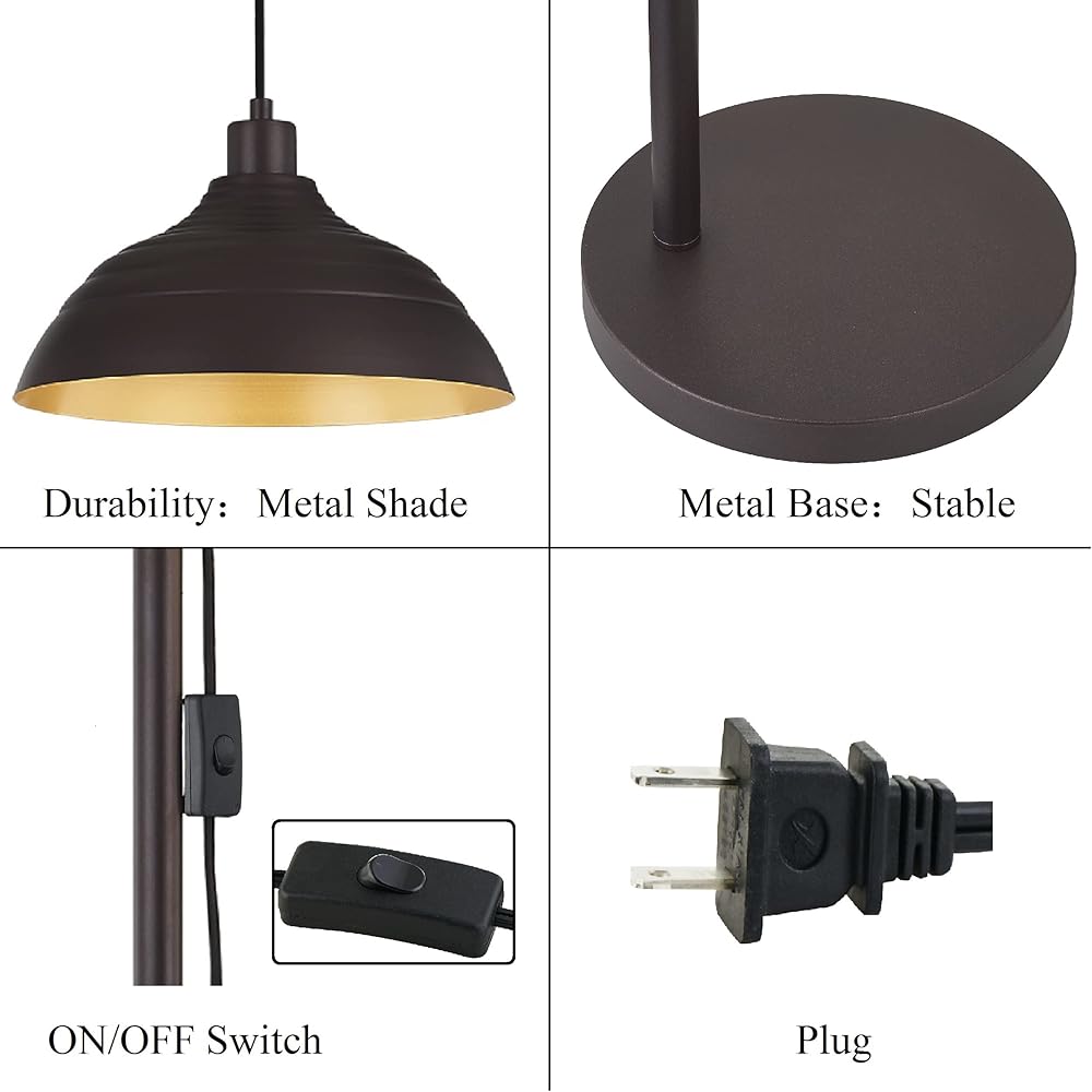 PRODUCT DIMENSIONS: Height 68" ,Metal Base diameter 10.23" ,Shade diameter 13" , Long power cord 122"(10ft)offers more convenience .Flexible & Convenient: Plug-n-play instant operation, convenient on/off switch attached for simply on/off access.