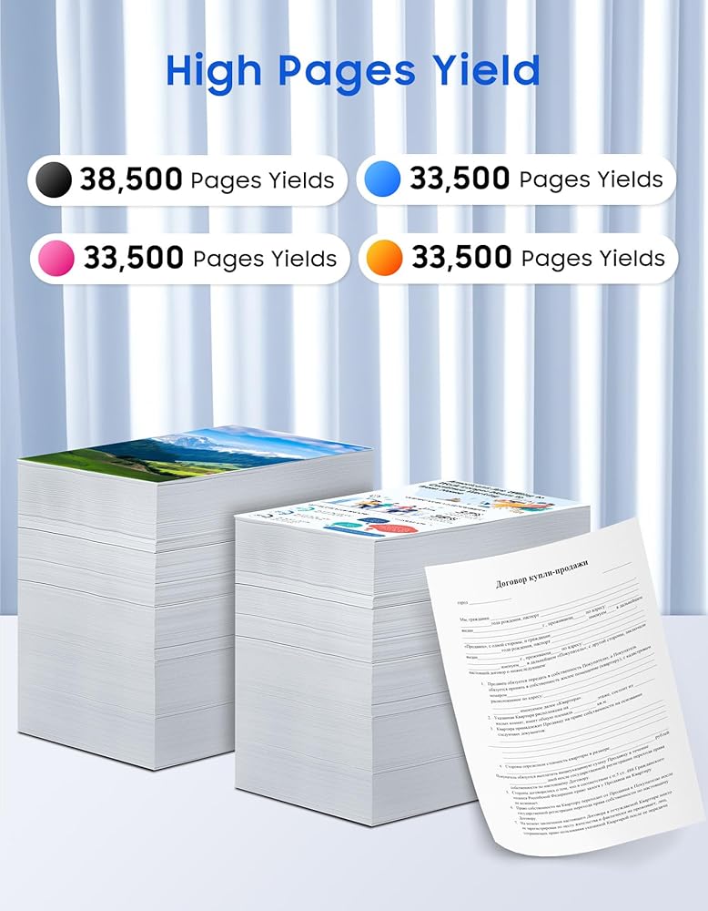 Page Yield: Up to 38,500 pages for T-FC50U-K Black Toner Cartridge and 33,500 pages for each T-FC50U-C T-FC50U-M T-FC50U-Y Toner Cartridge (Cyan, Magenta, Yellow)
