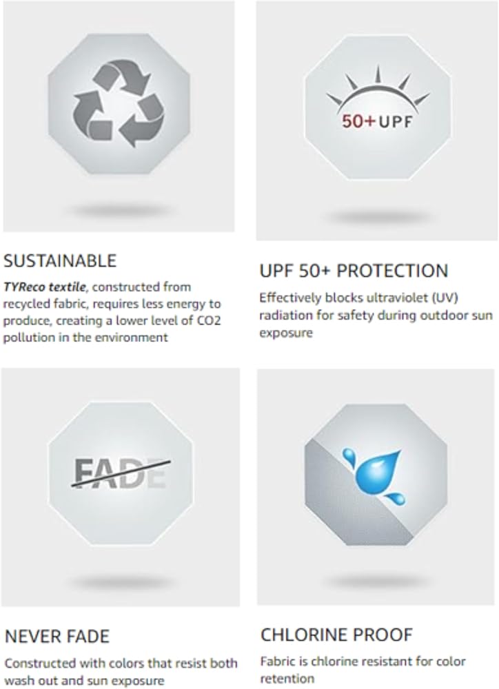 Provides a long-lasting fit, UPF 50+ protection and chlorine resistance.