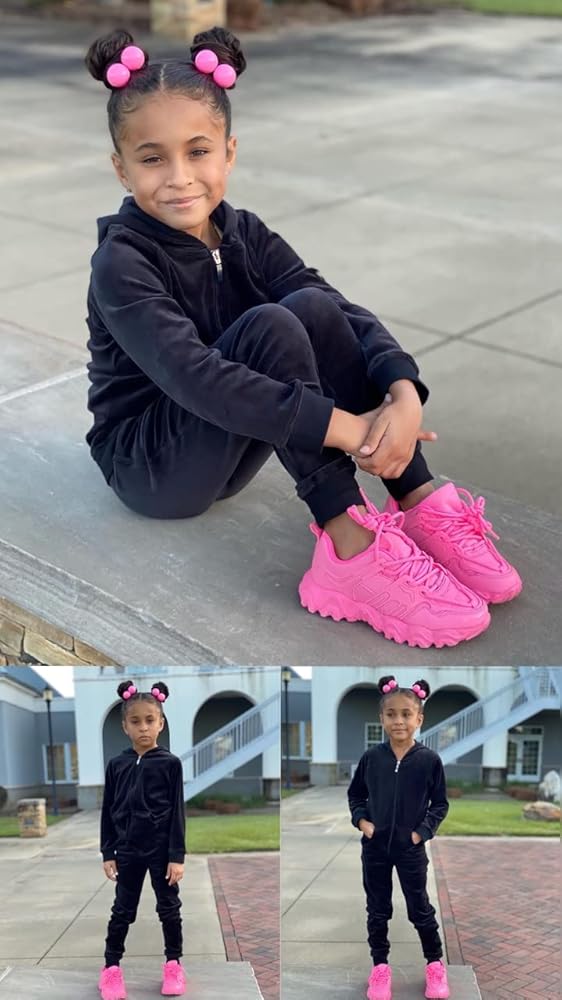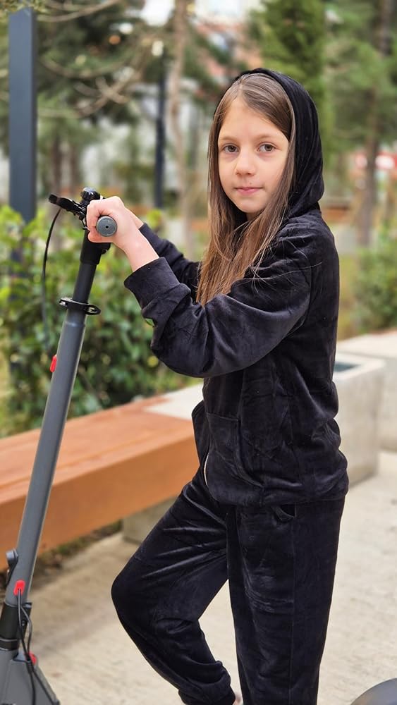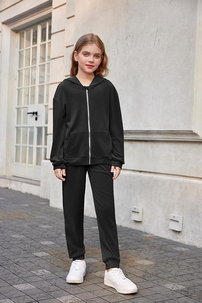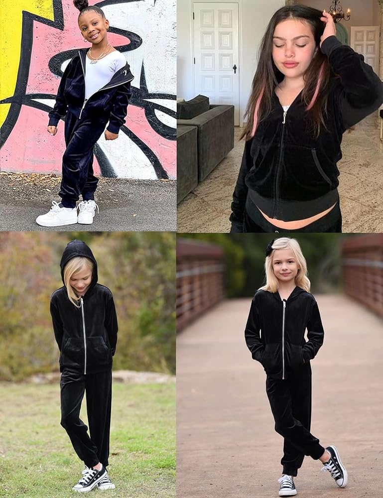 TIPS: Girls velour tracksuit fit are regular , not slim. For wearing effect, please refer to the details of the model's height and weight. If you like loose fit, we recommended buying a large size.