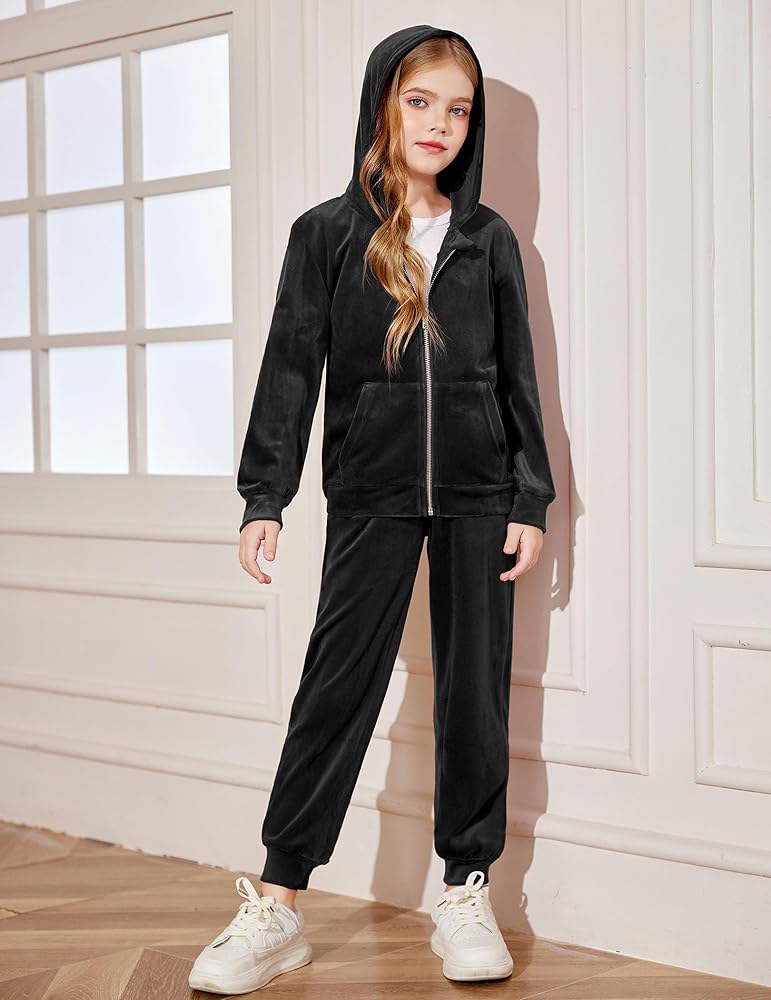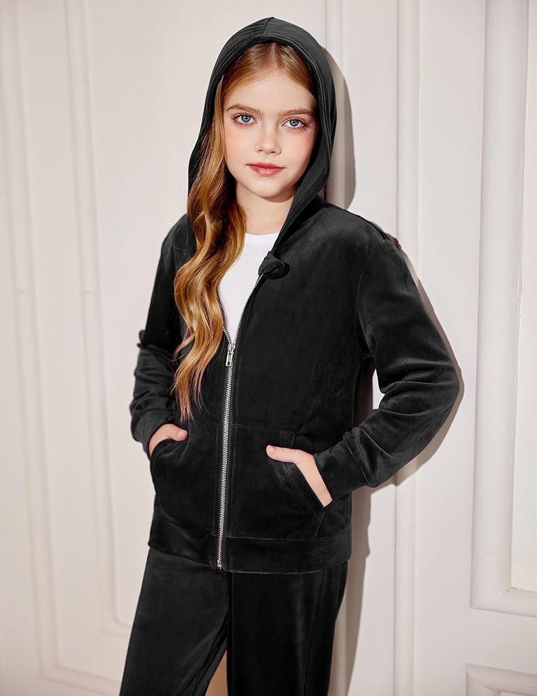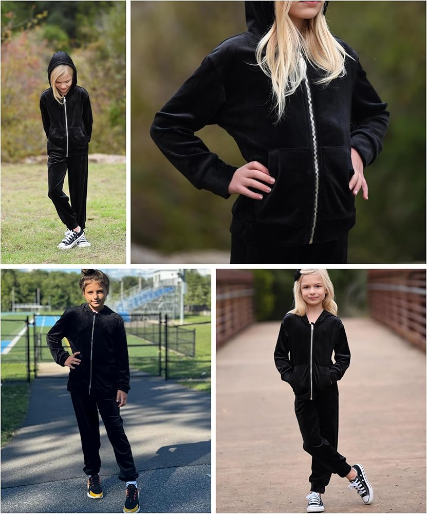WARM FABRIC:Girls sweatsuits with a buttery-soft texture similar to velvet, lend a luxurious sheen to fashion look. Stretchy and drape, velour outside only, promise cozy wear all day
