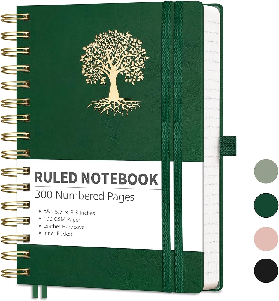 GRAPH PAPER NOTEBOOK: RETTACY Graph Notebook comes in a A5 (5.7'' × 8.3'') size, 300 Pages, Leather Hardcover, Sturdy Twin-wire Spiral Bound, 5 mm grid writing space, 100 GSM Paper, Pen Holder, 2 Elastic Closure Bands, Inner Pocket, Ribbon Bookmark, Lightweight Ruler, Sticky Index Tabs
