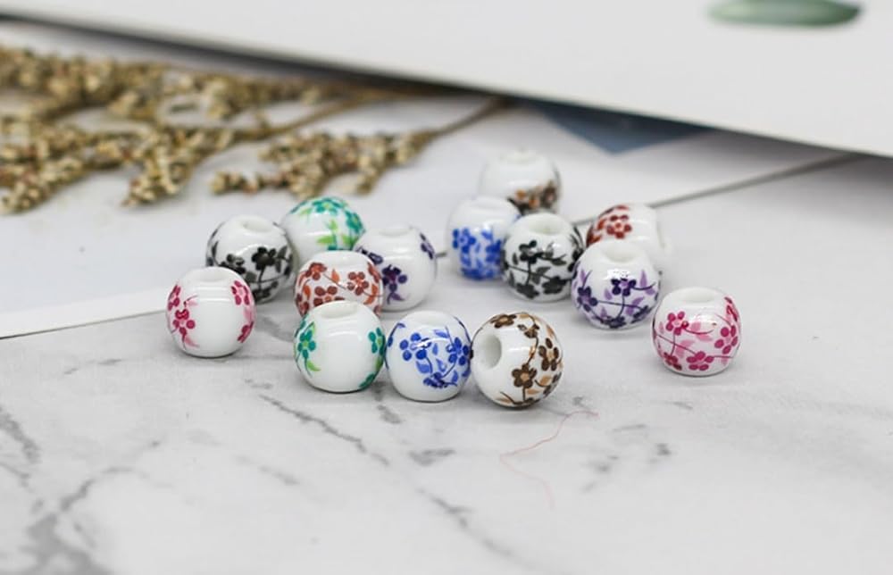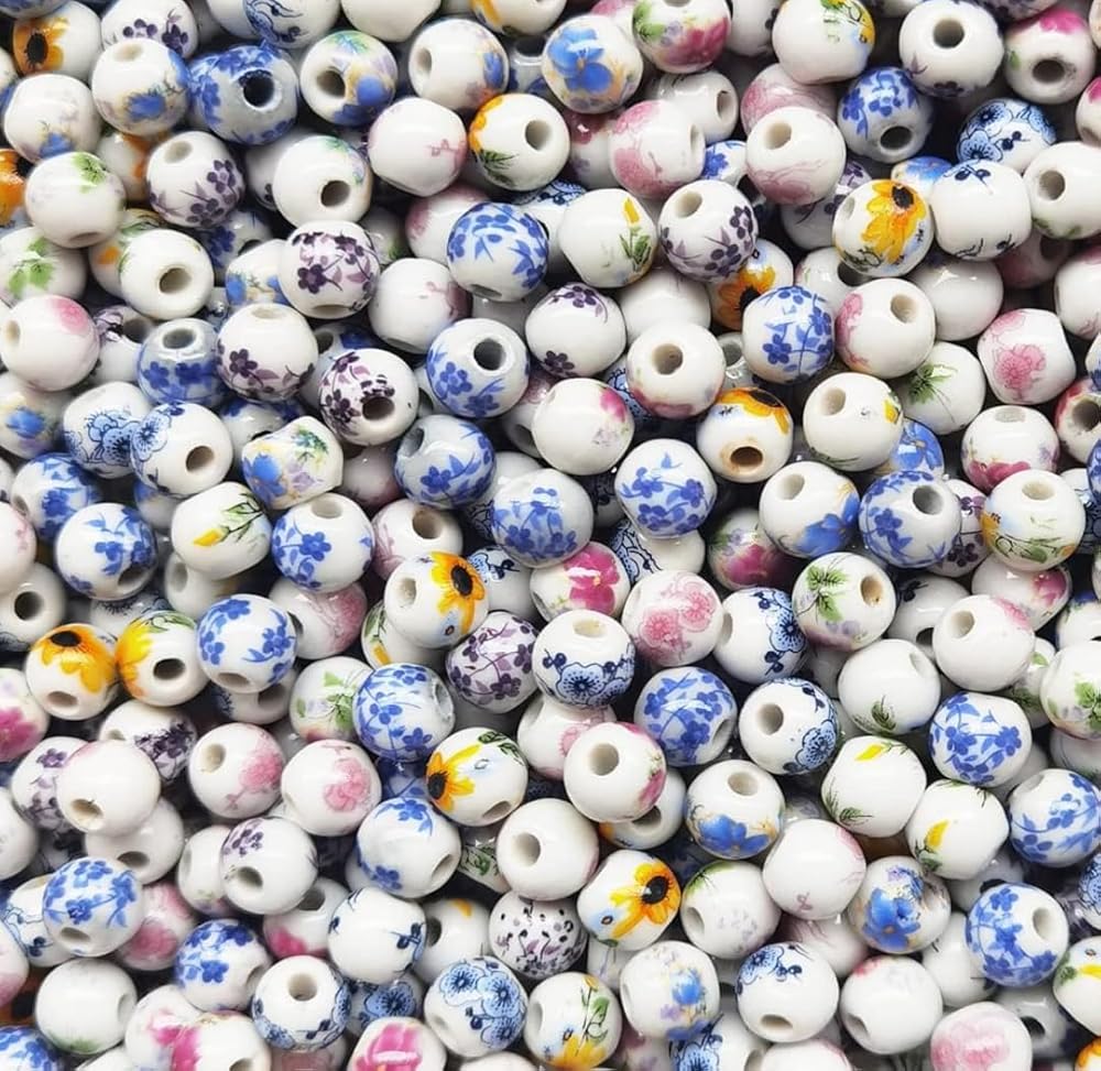 zmgmsmh 8mm 210 Pieces Porcelain Beads Bracelets Necklace Decoration Beads for Fur Leather, Curtain Beads Handmade Jewelry Flowers Glaze Pattern Pattern Making.