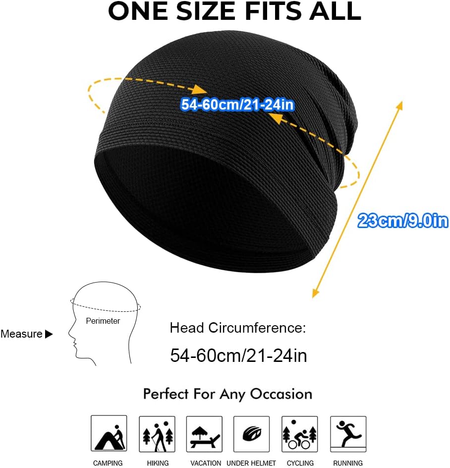 Stay dry and comfortable: Our sweat-wicking, lightweight, stretchy, and breathable skull cap keeps sweat away from your eyes and forehead, so you can focus on your activity without any discomfort. Welcome dry feelings!