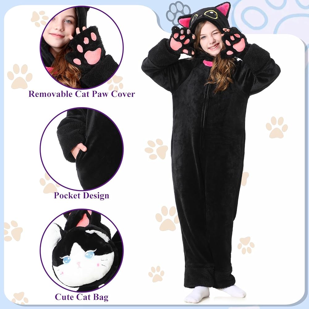 【Soft material】This kids cat onesie is made from soft, breathable flannel fabric for ultimate comfort Wear,Comfortable material and a loose fit allow freedom of movement