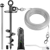 【Easy Installation】Easily screw the dog stake into the ground with the included torque bar. Attach any leash or cable for quick setup