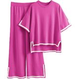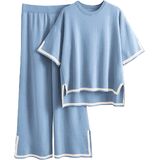 Knit lounge set pant set 2023 for women to wear around the house as pajamas loungewear, or outside on street, shopping, travel as knit sweatsuit. Can be worn as a set, or as separates, effortless cozy and chic designs for a laidback, throw-on-and-go approach to dressing