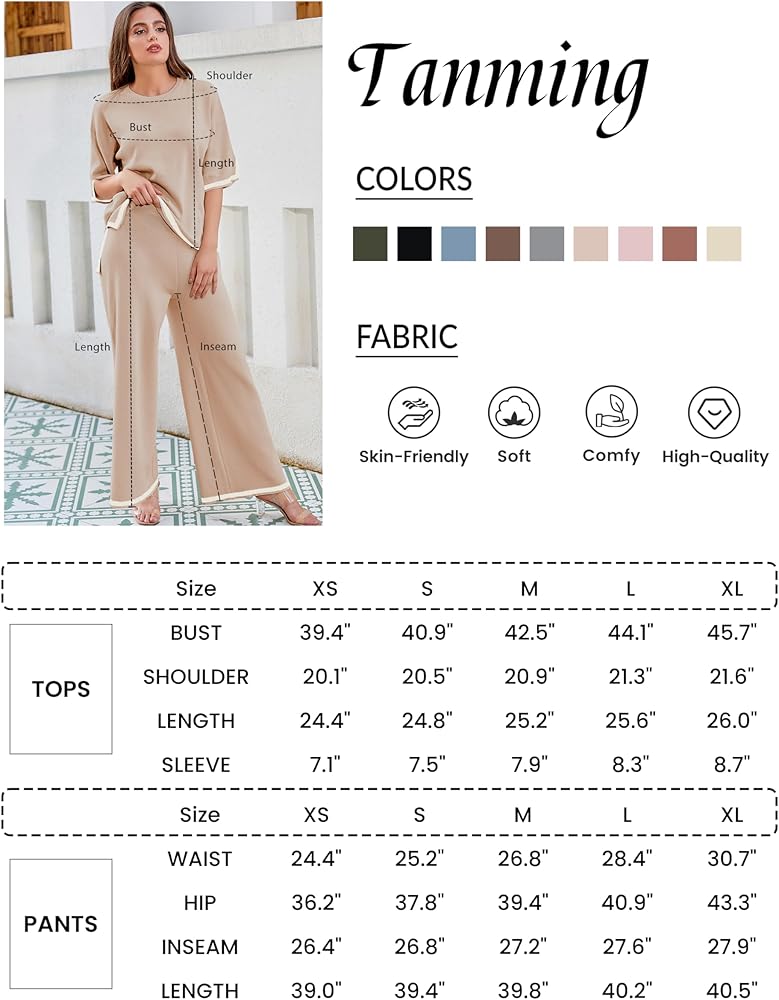 ❤Note: model is 5'7", wearing size S. Pant length: 39.37", inseam: 26.77" measured by Small size, please check the size chart carefully before your orders. The black apricot lounge sets for women recommended to machine washable or handwash, in cold water, gentle cycle