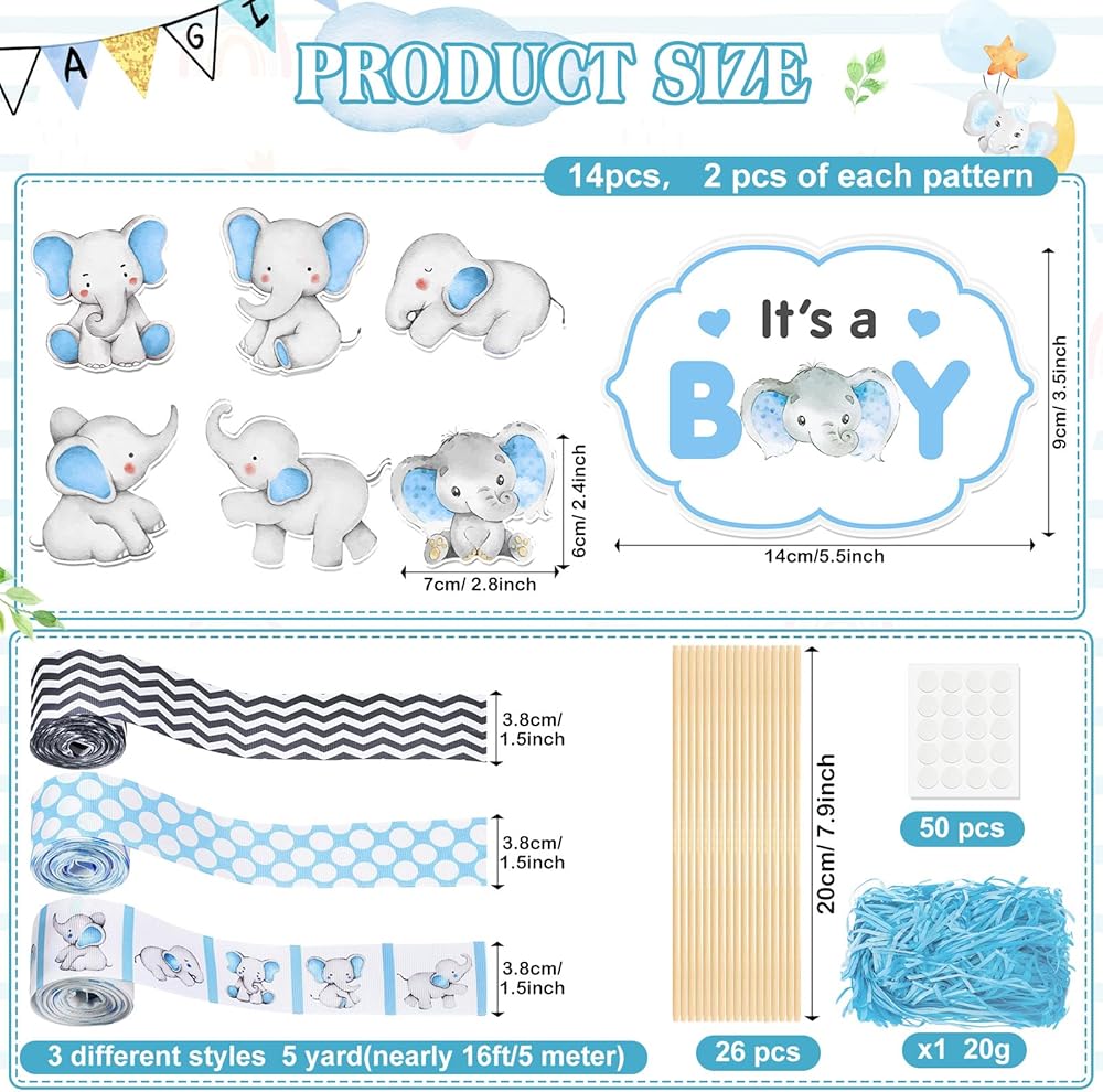 Easy to DIY, You can use the Elephant cutouts, Elephant themed printed ribbon, and Raffia to make various crafts and decorative projects.