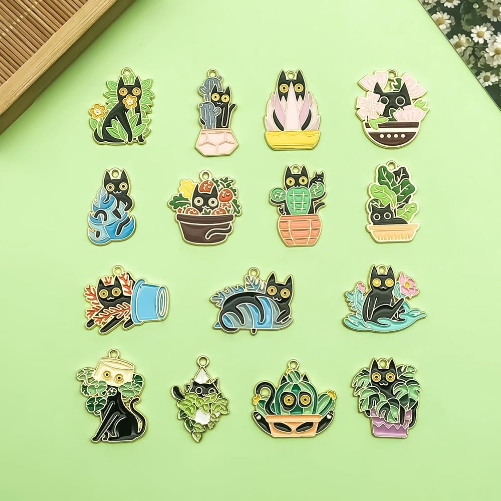 Sailanzi 30pcs Alloy enamel cat series Pendant Jewelry Making DIY Keychain Earrings Pendant Various Design Charms for Jewelry Making Bracelets Necklace (SN723)