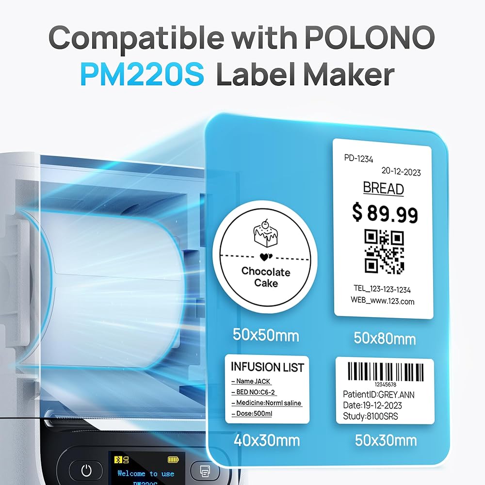 【Compatibility】Compatible with POLONO PM220S label maker. Note: Label Maker Tape on the side of the roll is compatible with the PM220S Label Maker, as it contains a printing sensor chip for RFID identification. Please avoid tearing or damaging the sticker, as this may impact the printing quality