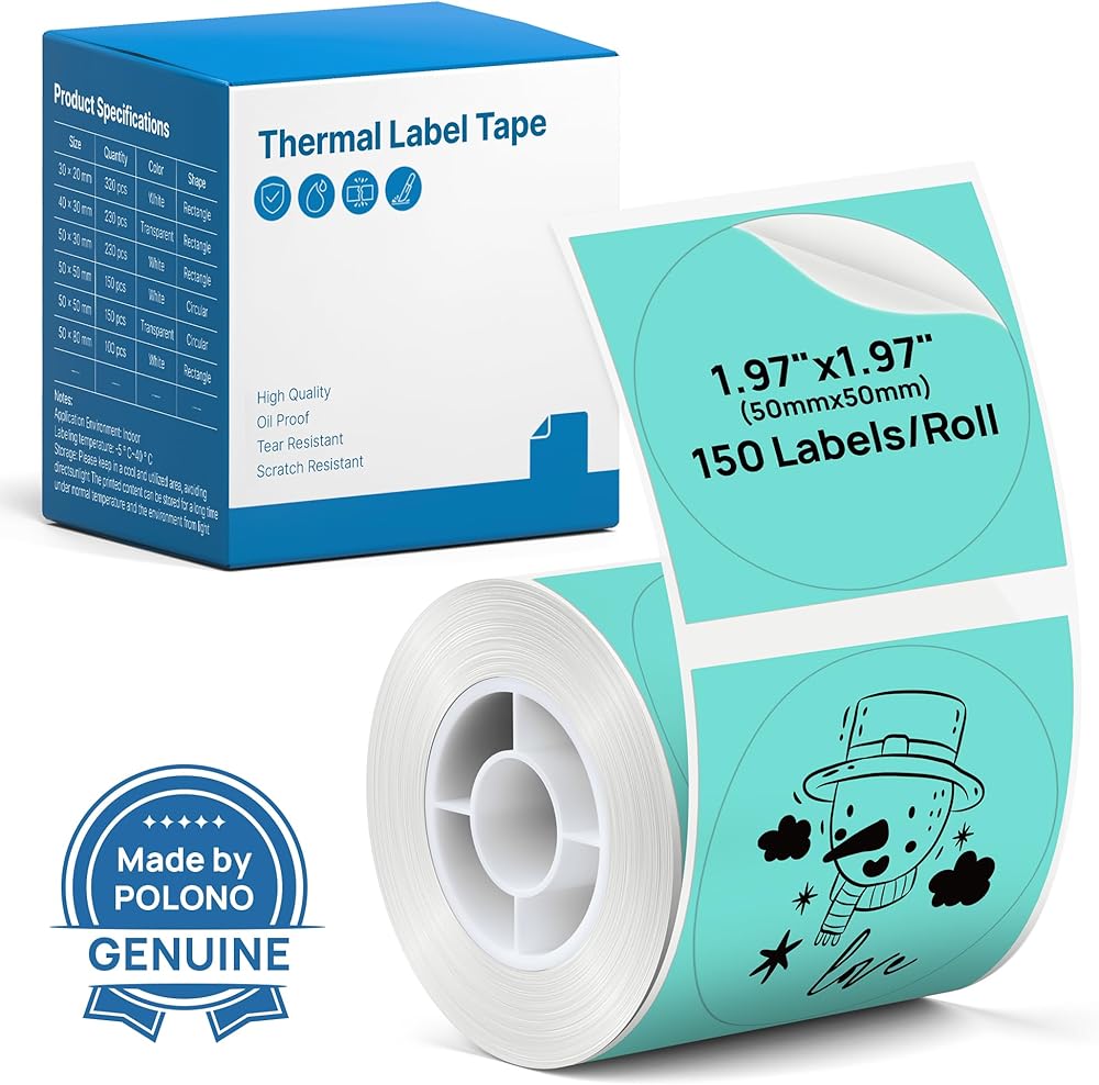 【Specifications】Label Size: 1.97"x1.97" (50x50mm). Quantity: 1 Roll, 150 labels. Color: Khaki. Genuine themal label tape compatible with POLONO PM220S label maker, it may not work on other label printer
