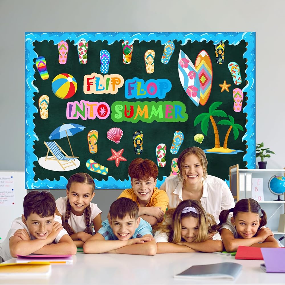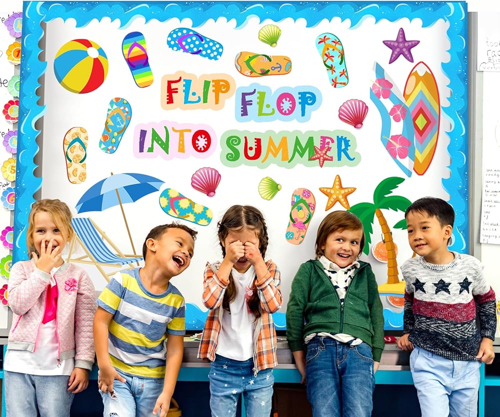 🏖🏖【Wide Applications】 These flip flops bulletin board borders set is ideal for summer bulletin boards in the school classrooms, daycare, nurseries, and preschools. Ideal for windows, shop windows, walls, doors, blackboards, school hallways, summer theme parties. It can add a fantastic atmosphere to any occasion.