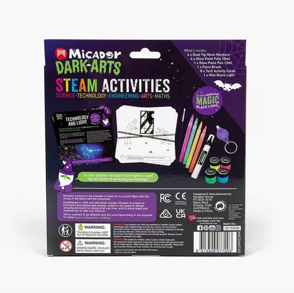 FUN AND EDUCATIONAL - Glow STEAM Activity Packs from Micador teach young artists about the science of light through glow-in-the-dark art & craft activities and magic black light exploration