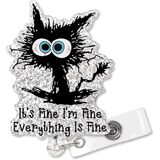 XQLZY It's Fine I'm Fine Everything is Fine Silver Glitter Cute Badge Reel Retractable with Alligator Clip, Funny Cat ID Badge Holder Gift for Nurse Doctor Colleagues Firefighters Social Workers