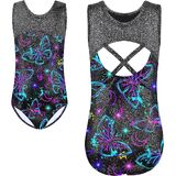 - Design of Girls leotard : Stitched neckline, unique cross back