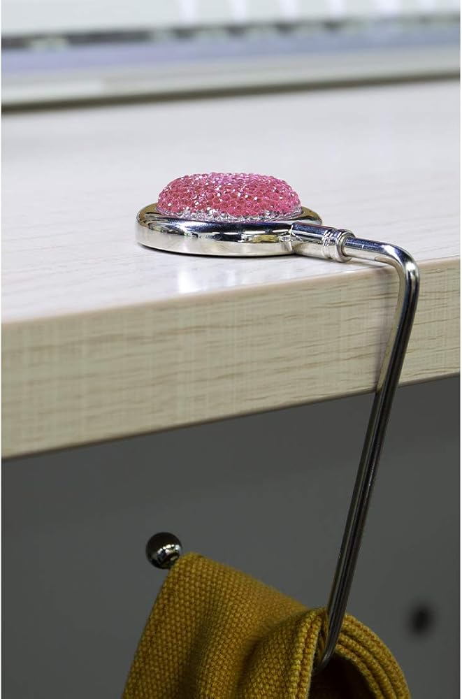 Material: Our purse hook is made of zinc alloy and color rhinestone series, the disc of handbag hanger is made of anti-slip rubber which can prevent it from slipping on smooth or hard surfaces.