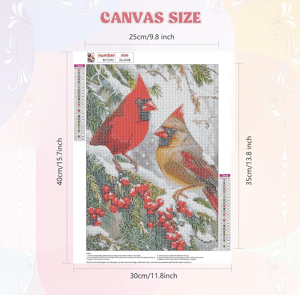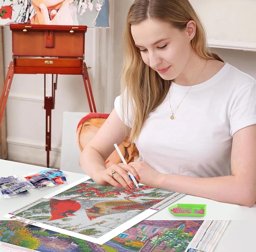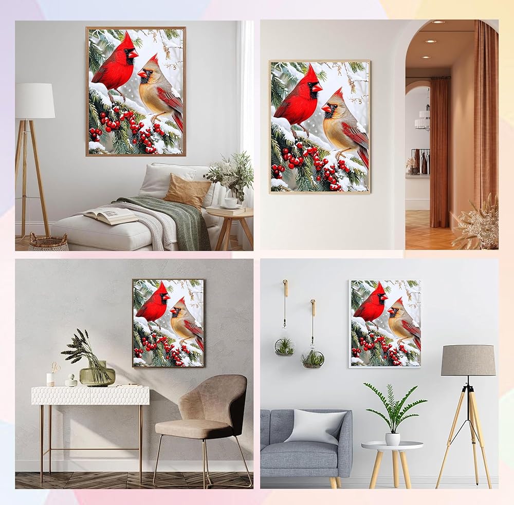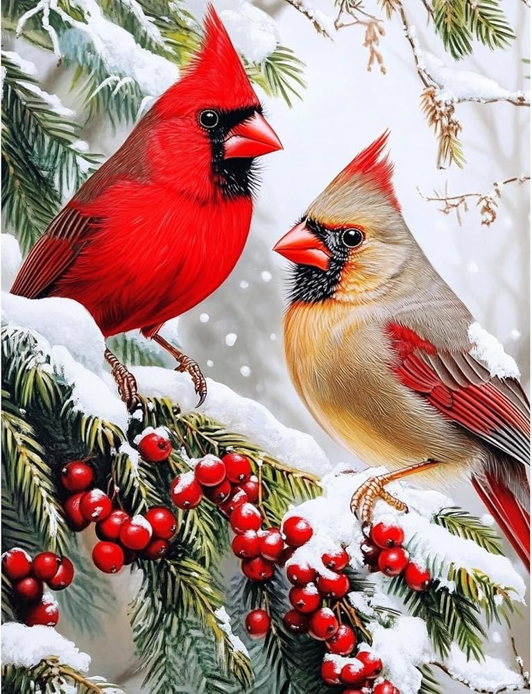 QENSPE 5D Diamond Art Cardinal Birds DIY Round Full Drill Diamond Painting Kits for Beginners,Winter Diamond Dots for Adults,Home Wall Decor & Gift Perfect for Relaxation 12x16 inch