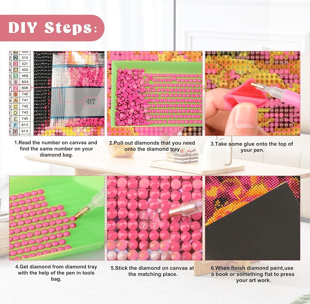 DIY Diamond Art Painting - Each diamond painting is designed with different symbols and alphabet instructions to define the patterns, the letter symbols are clear and easy to understand and the Dmc code on the canvas corresponds to the color of the drill bit.You just follow the numbering instructions on the canvas and stick the rhinestones directly to complete a painting