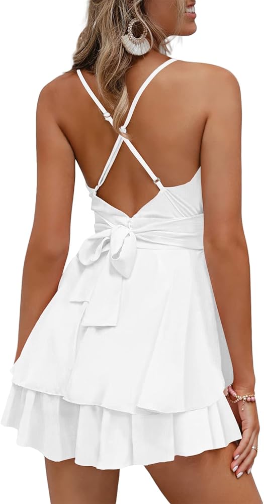 Shorts jumpsuit outfits feature with high waist, belted,double layer flowy ruffle hem, mini dress looks