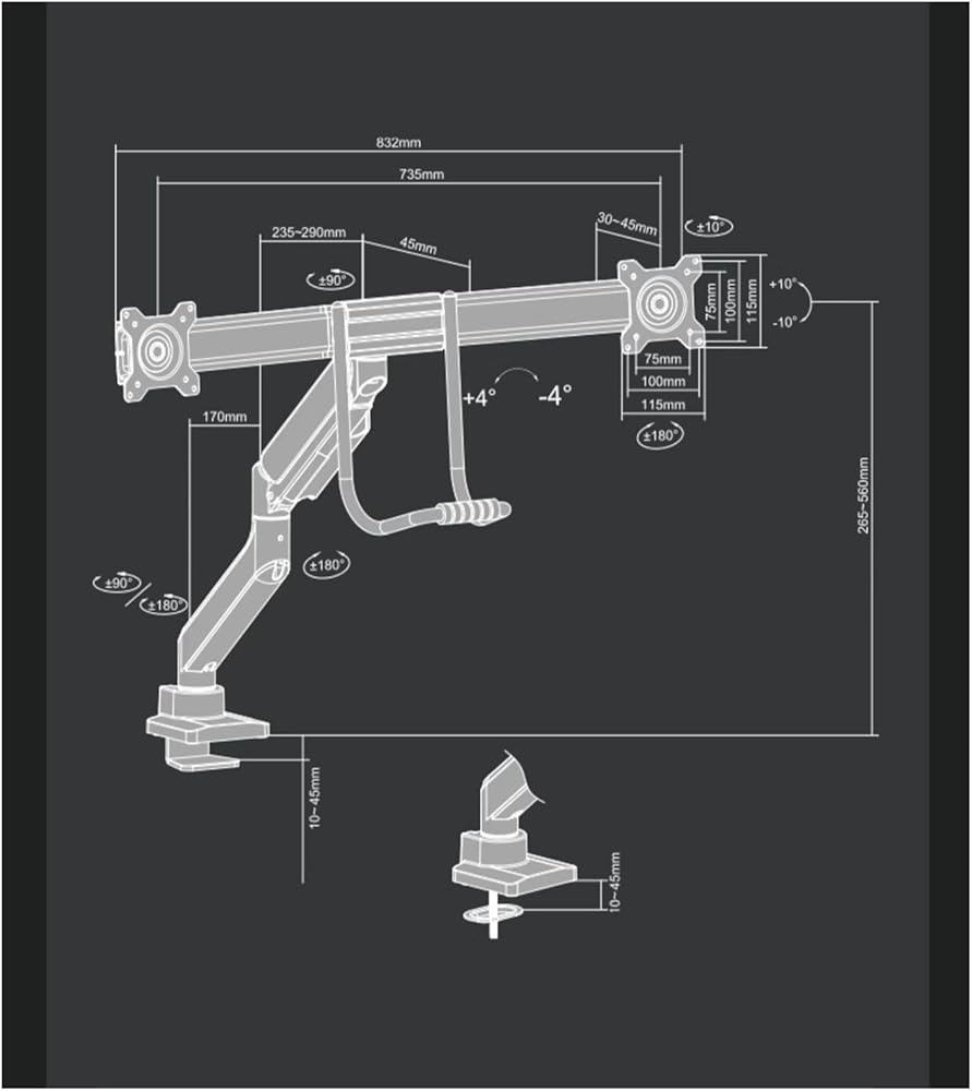 Dual-Screen Monitor Stand Robotic arm Desktop Computer Large Load-Bearing Monitor Base T9-1DW