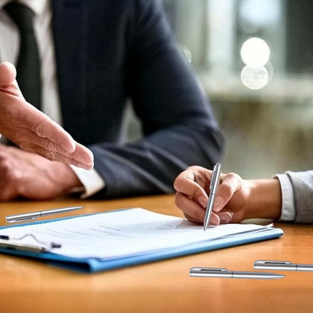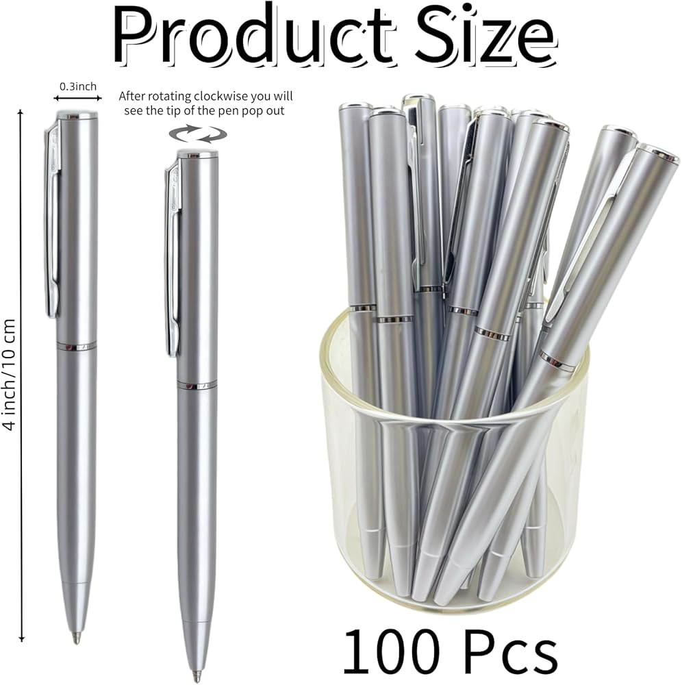 This set of 100 mini pens features a sleek silver design and smooth-flowing black ink, making them ideal for quick note-taking on the go.