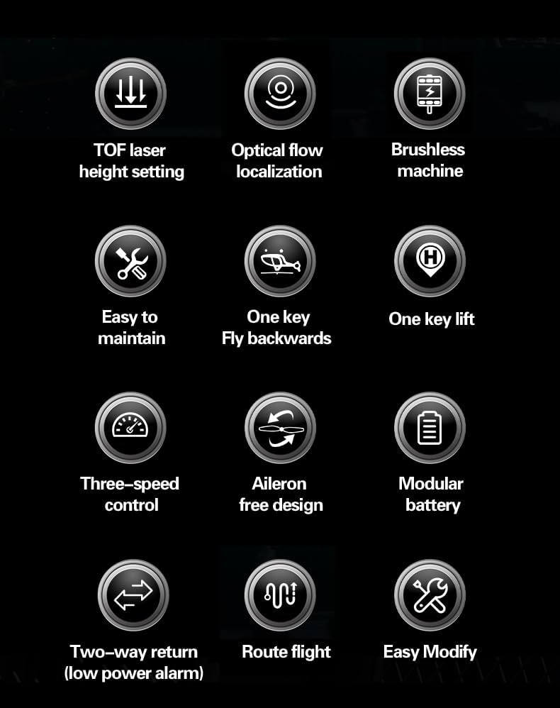<<【Enhanced Flight Precision】Features intelligent positioning with barometer-based altitude hold, optical flow positioning, and TOF (Time-of-Flight) altitude hold. These advanced sensors ensure smoother hovering and precise altitude control, ideal for beginners and pros alike.