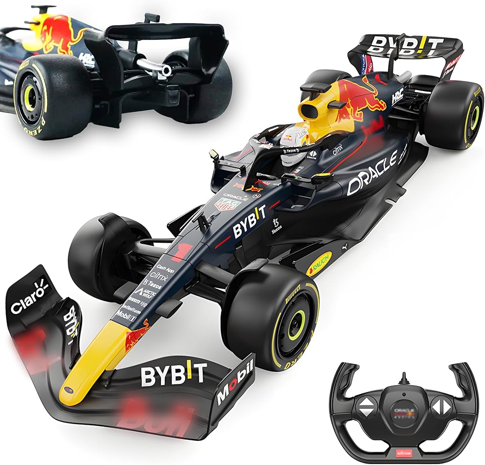 Crafted from tough ABS plastic, this RC car boasts wear - resistant rubber tires, an independent suspension system, and realistic decals. Details like sponsor logos, the unique wheel designs, and the cockpit structure make it a display - worthy collectible. At the same time, it's sturdy enough to withstand kids' play, serving as a durable toy for both children and adults who love F1 car models