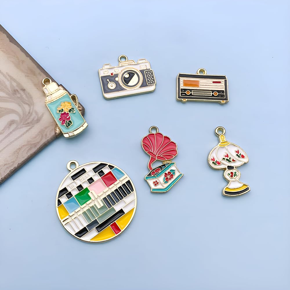 Youdiyla 24pcs Alloy enamel daily necessities series Pendant Jewelry Making DIY Keychain Earrings Pendant Various Design Charms for Jewelry Making Bracelets Necklace (SN404)