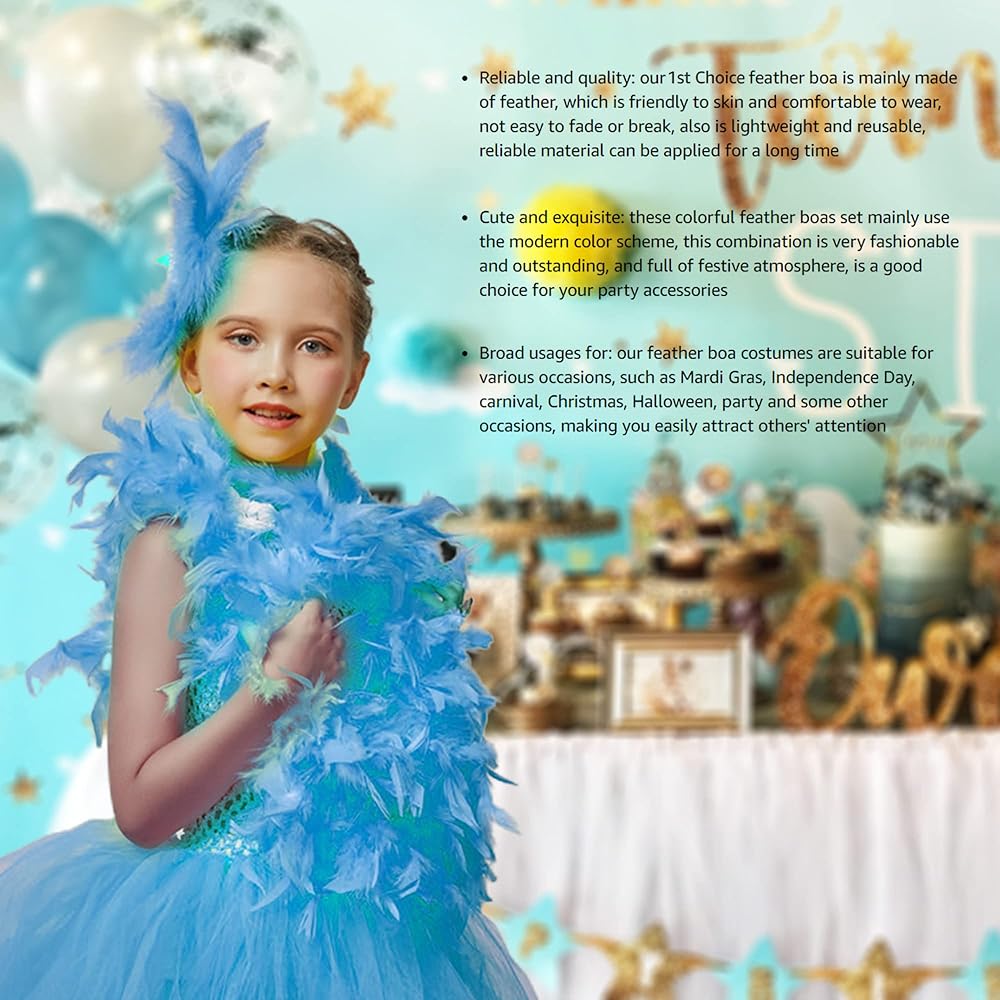 High Quality Colorful feather Boa: The boas is sewn from real natural turkey feathers. Beautiful feather scarves are made through professional processing procedures. Feather boa are not easy to shed lint, soft texture and bright colors are suitable for most women and girls.