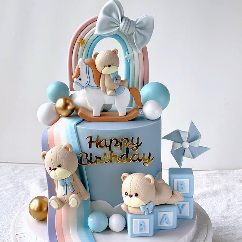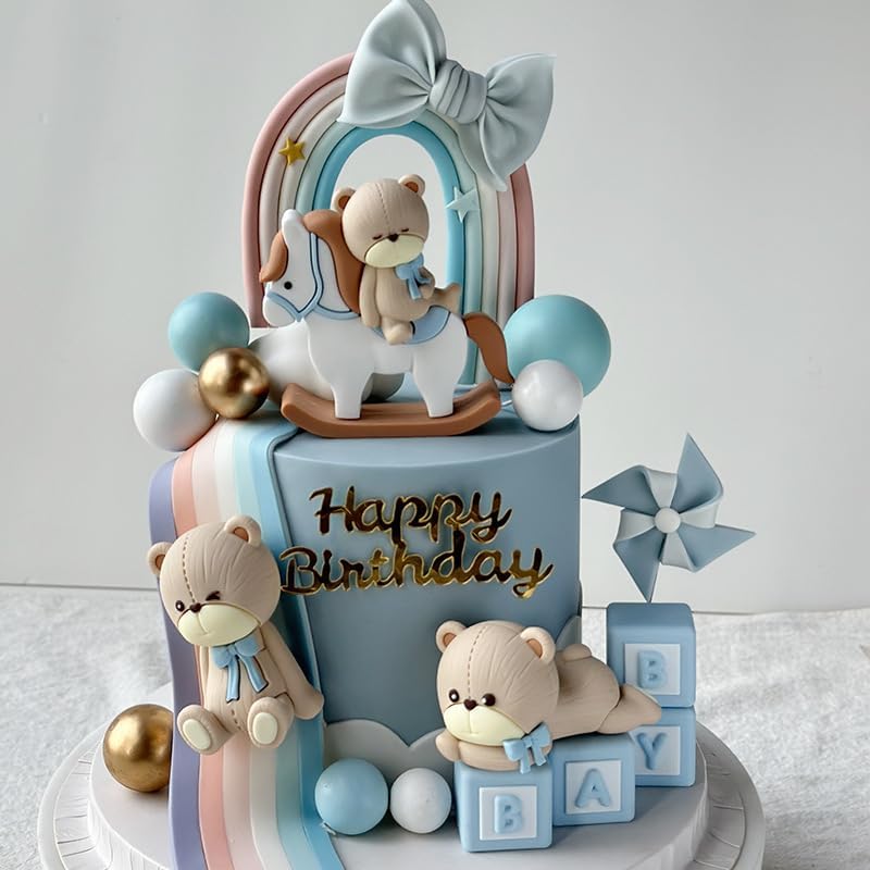 Easy to Use: The cute bear cake topper decorations are easy to arrange on your cake. Whether it's for a baby shower or a birthday, these decorations fit most cakes and add an adorable touch. NOTE: The cake topper decorations are not edible!