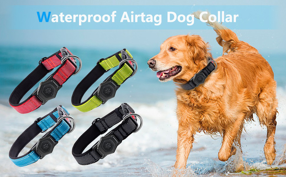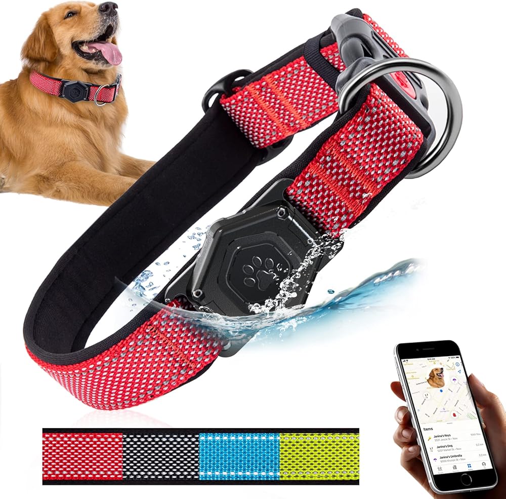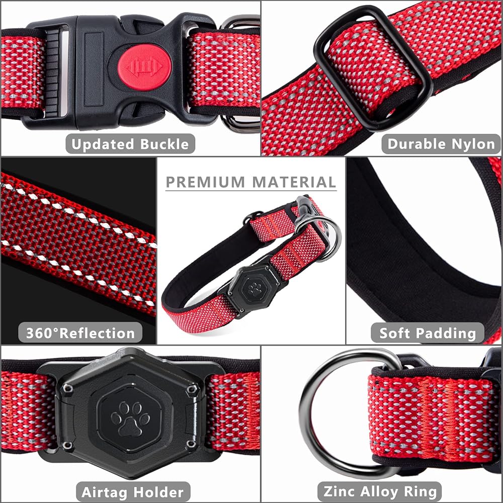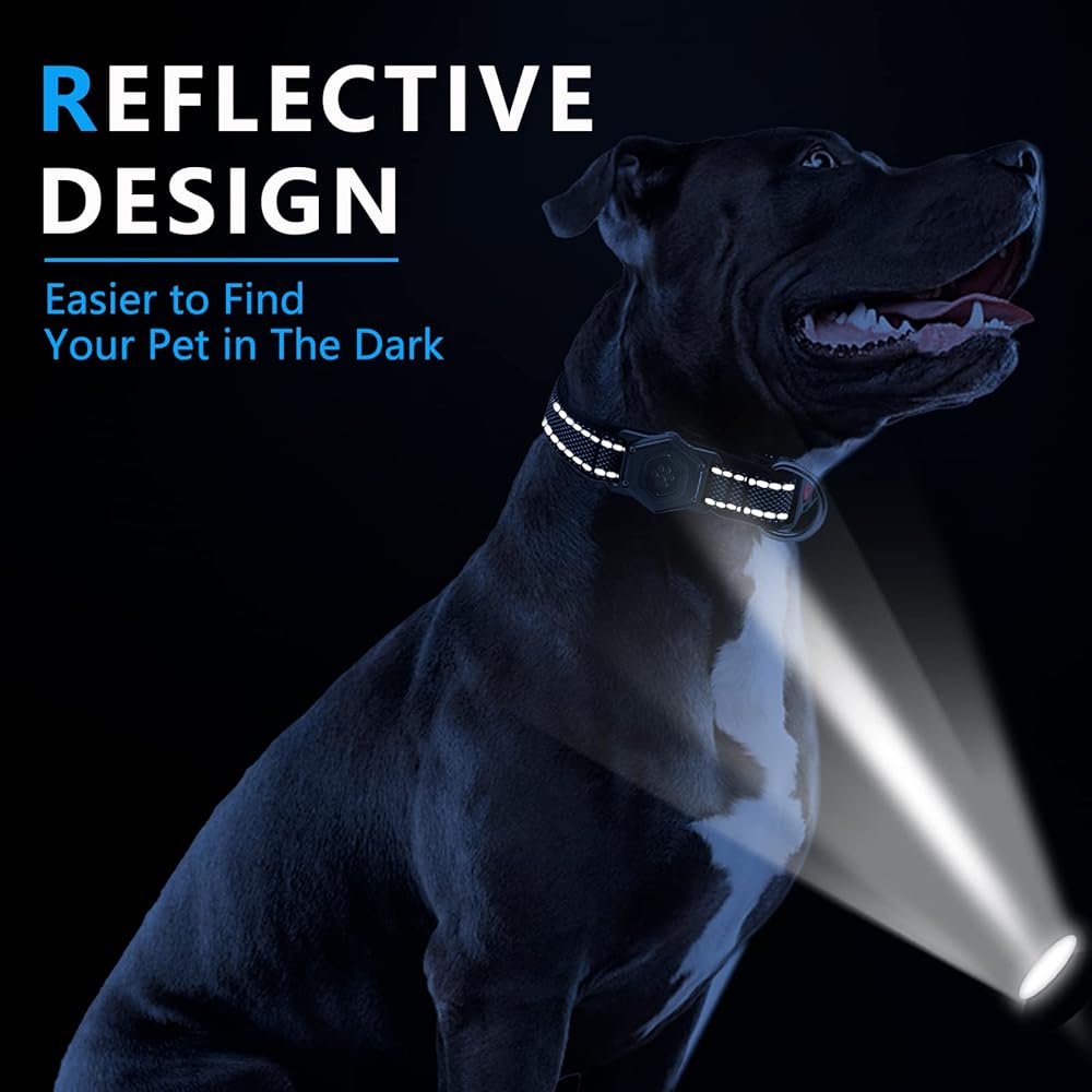 Airtag Dog Collar,Durable Dog Collar with Waterproof Apple Air Tag Holder Case,Adjustable,Soft,and Reflective GPS Tracking Dog Collars for Medium and Heavy Duty Large Dog Boy or Gril