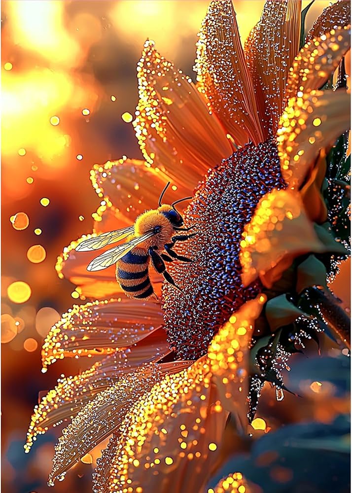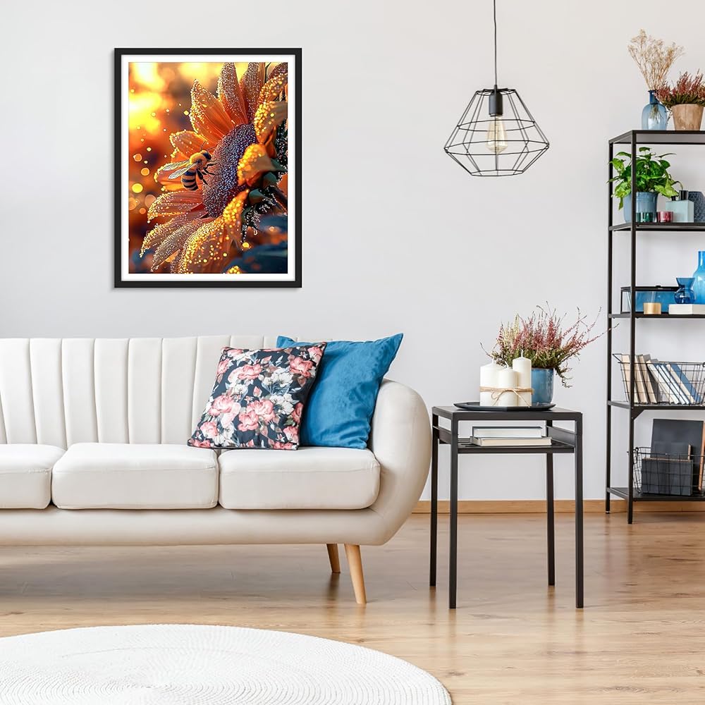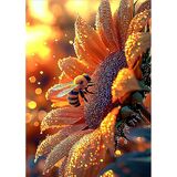 MOGTAA Bees Diamond Art Kits for Adults, 5D Full Drill Diamond Painting Kits for Adults Beginner, DIY Sunflowers Round Diamond Dots for Adults, Gem Art Home Wall Decor 12 X 16Inch