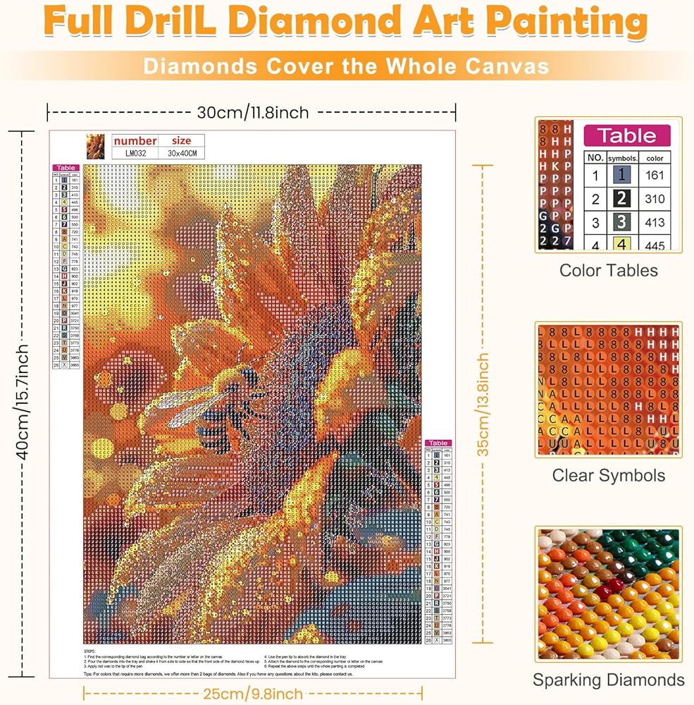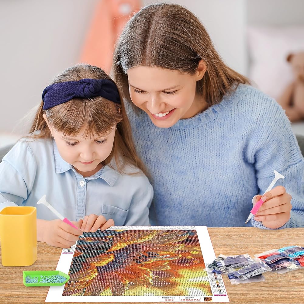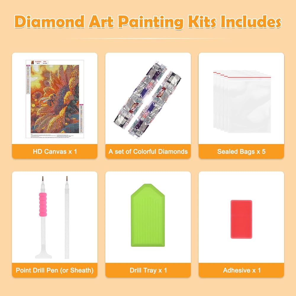 What You Will Get: Diamond art kits includes a high definition painting canvas, a red glue clay, a cube diamond tray, enough colorful round diamonds. In addition, we offer an extra 30% drilling for each color