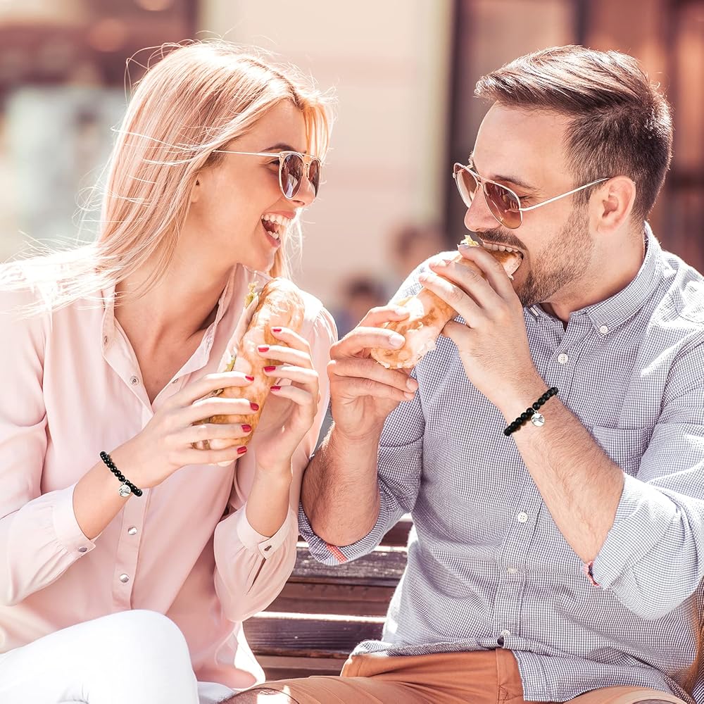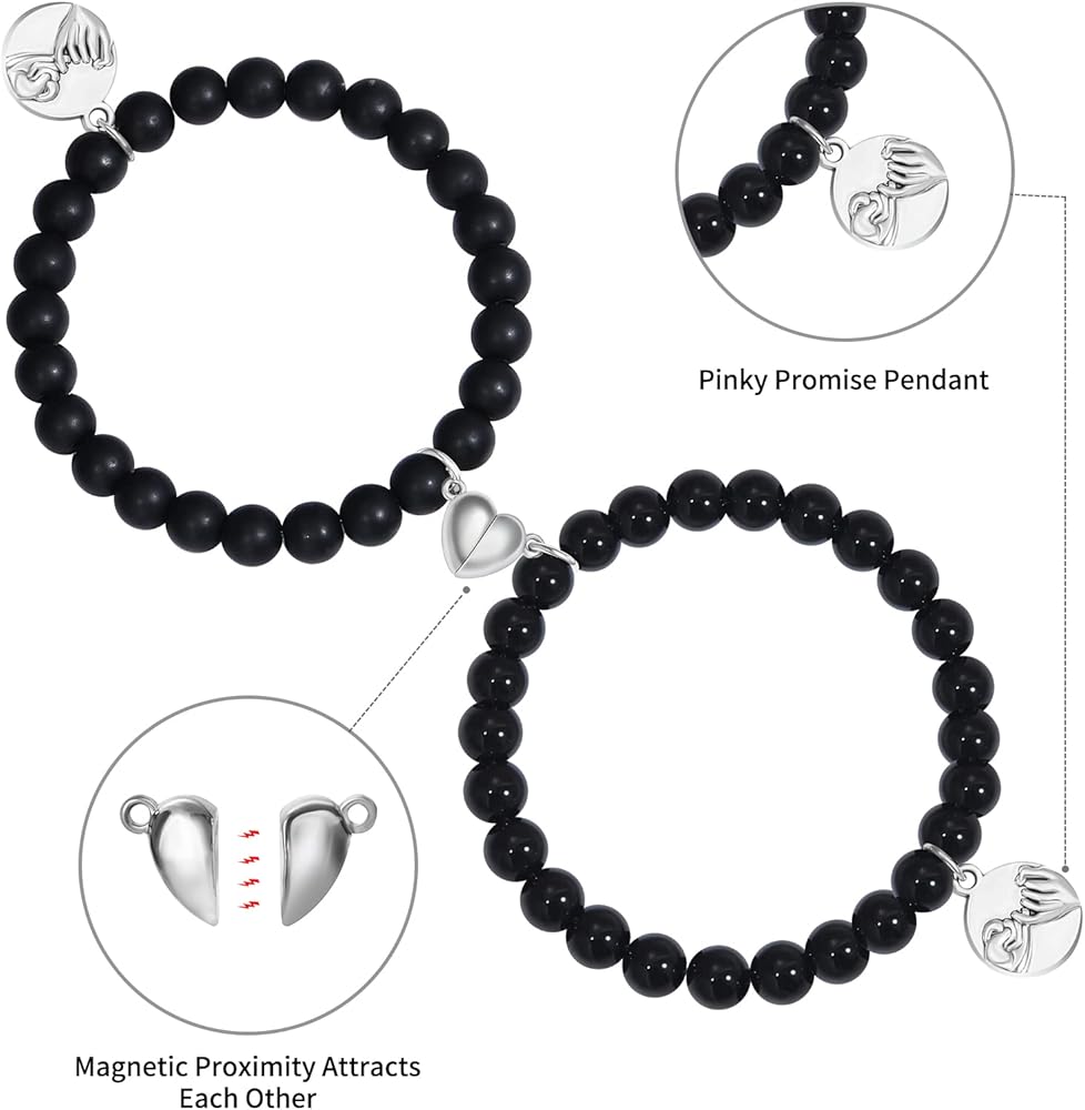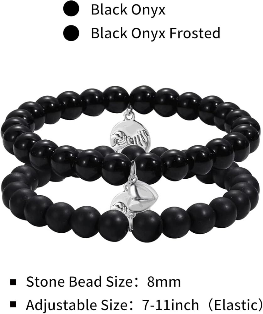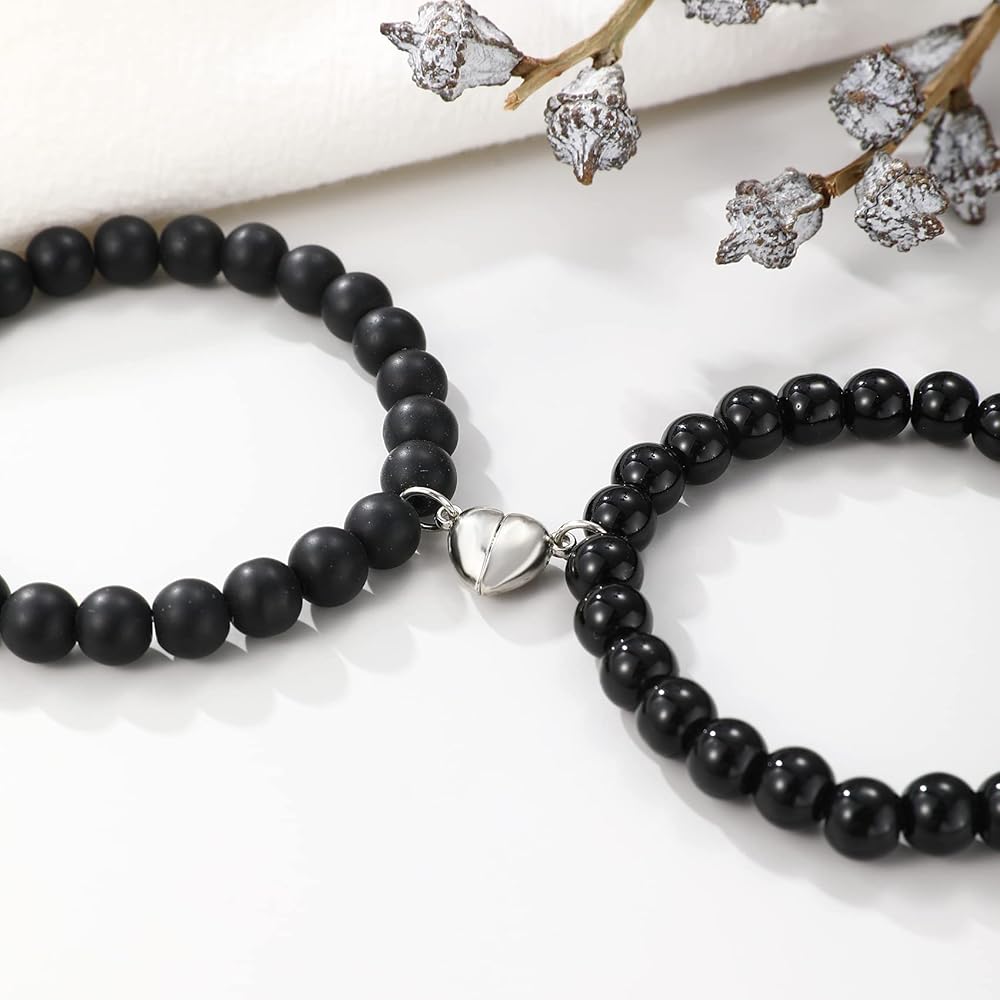 【Magnetic Couple Bracelet Size】The diameter of the natural beads is about 8mm. The bracelet is approximately 7 inches in length and has an elastic, stretchable design that will fit most wrists. Featuring a magnetic heart pendant, the bracelet attracts each other when close to represent your eternal love.