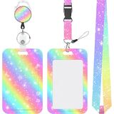 Multi-function: The ID card holder set includes a detachable key lanyard, a vertical ID card holder, and a retractable badge reel, equipped with a 360-degree rotating carabiner for easy use. To insert the card, just press the back and push it up, which is very suitable for storing work cards, student cards, credit cards, etc.