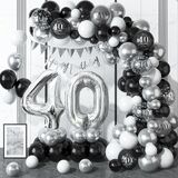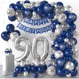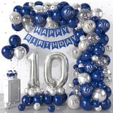 80th BIRTHDAY DECORATIONS:80th birthday party decorations for women man include 1pcs "HAPPY BIRTHDAT"banner,32inch "80"foil balloon,40pcs dark blue balloon(5+10"),20pcs metallic silver balloon(5+10"),15pcs 12inch "80" balloon(blue,silver,silver confetti),2pcs long balloon,glue,balloon strip,ribbon.