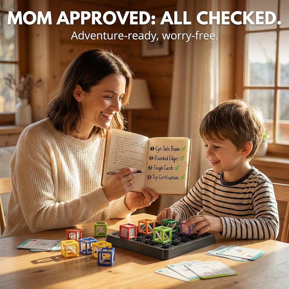 [Safety certified configuration, durable materials to protect the experience] Built with kid-safe materials (non-direct-beam design, rounded edges) and waterproof challenge cards, this STEM toy meets international safety standards—ideal for home, classroom, or on-the-go play. Parents seeking gifts for 8 year old boys or 10+ year old boys will appreciate its durability, making it a reliable choice for STEM learning that withstands endless exploration.