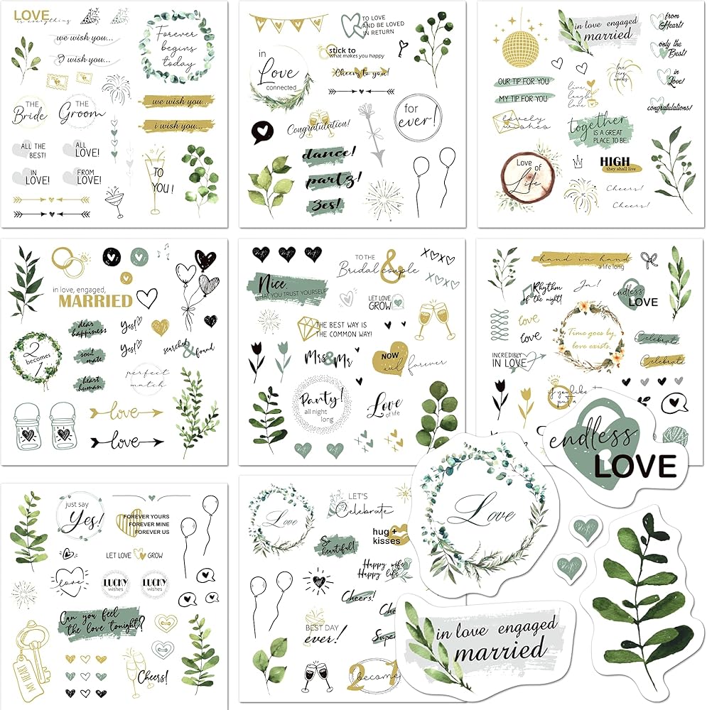 LOVE DESIGNED WEDDING STICKERS - You will receive 8 pages of stickers for your wedding guestbook. All stickers are individually designed with love. With the wedding sticker set, it is easy for you to create the centerpiece, creatively designed guestbook, or photo album.