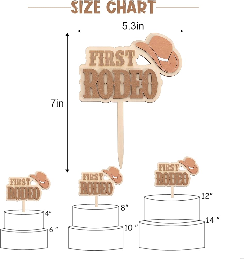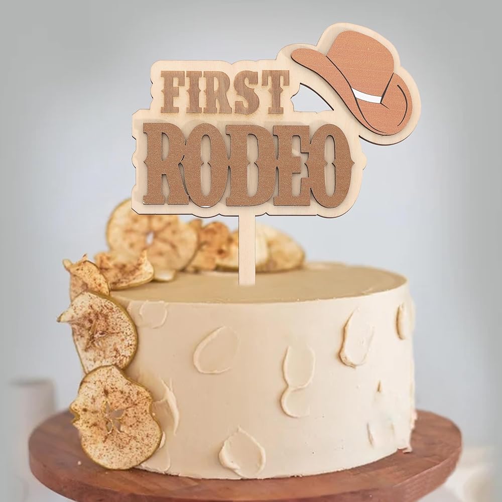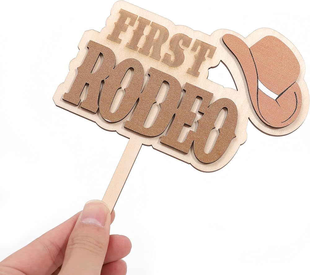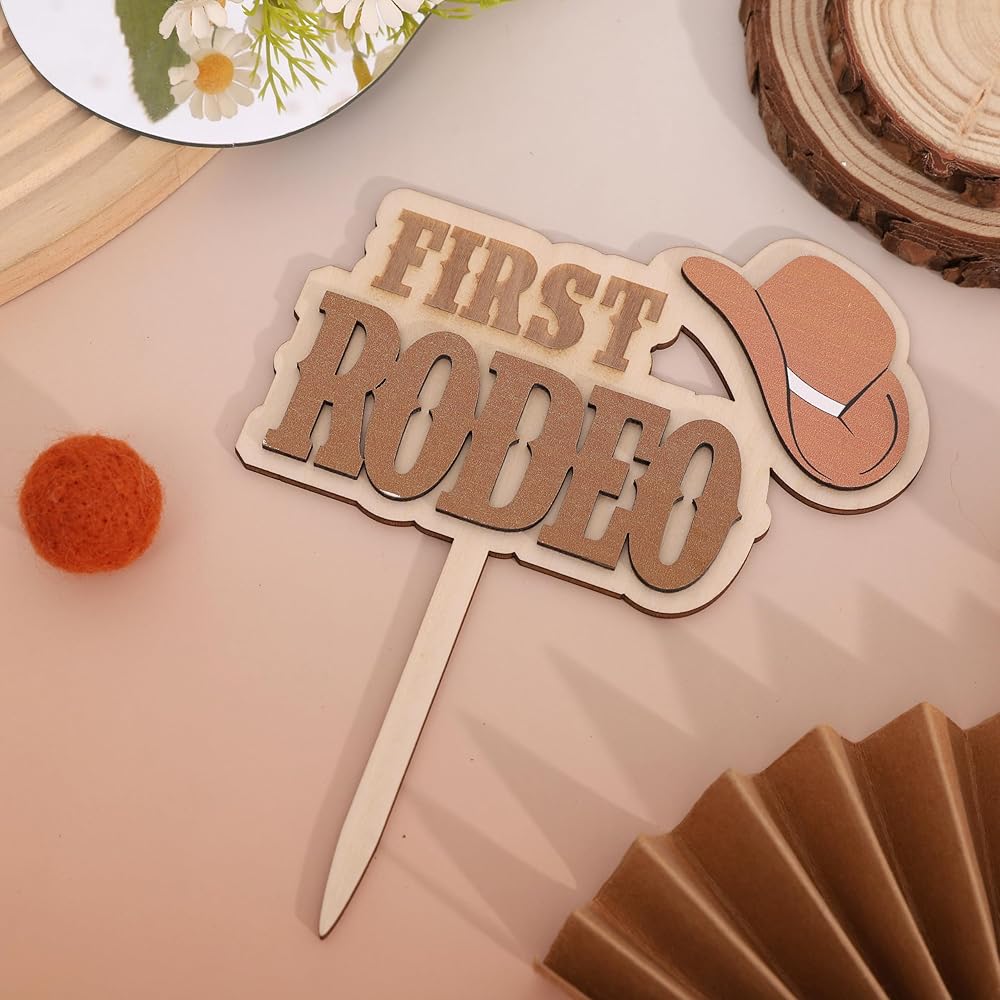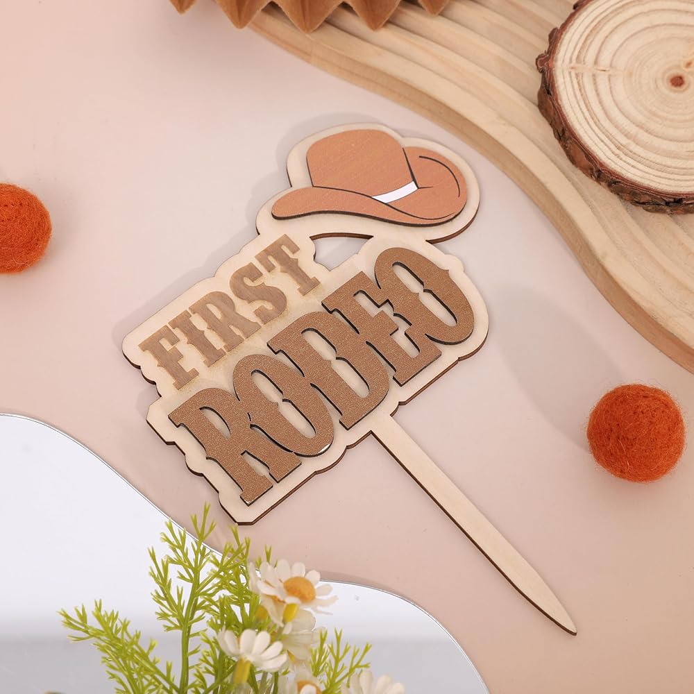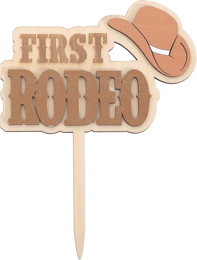 Wooden My First Rodeo Cake Topper:Get Ready For The Cutest Rodeo Celebration Ever With This Wooden Western Cowboy Cake Topper! This Cake Topper Is All About Having Fun! This Cake Topper Is Perfect For Western Themed Birthdays, Rodeo Parties