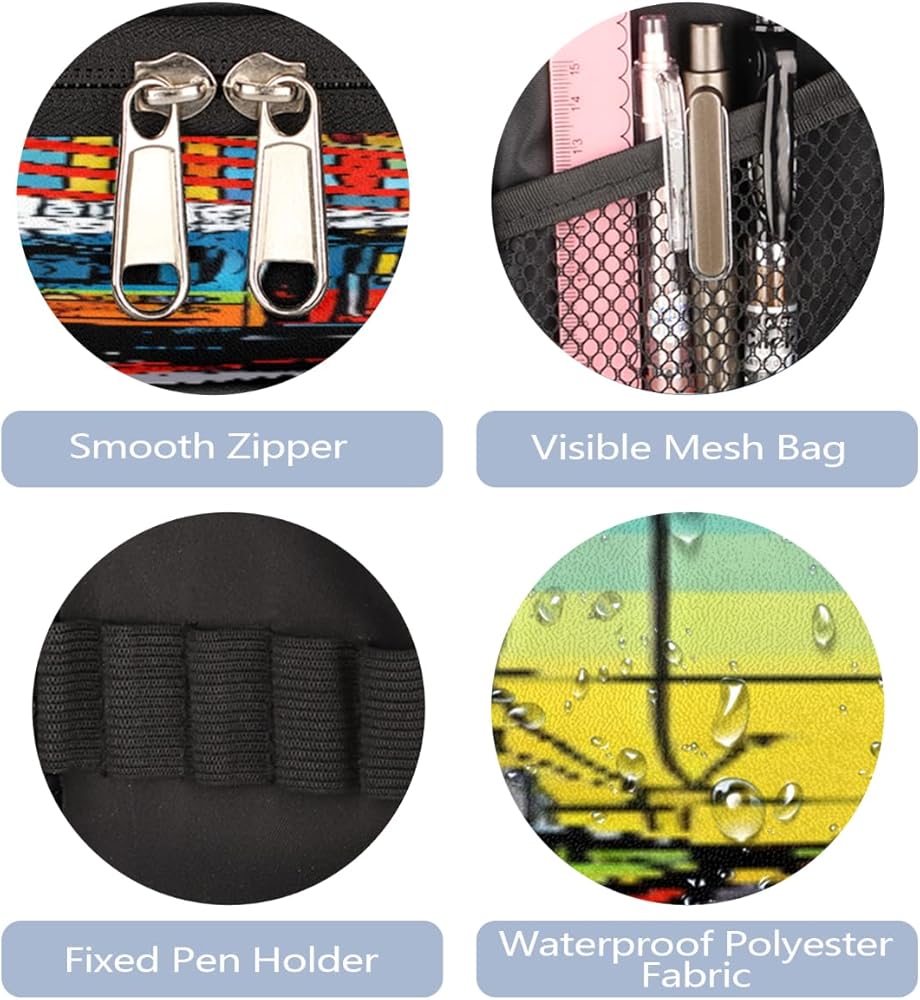 Large Capacity: The pencil case can easily hold your pencils, pens, markers, rulers, and other learning supplies. Perfect for your backpack, handbag, canvas bag, travel bag.