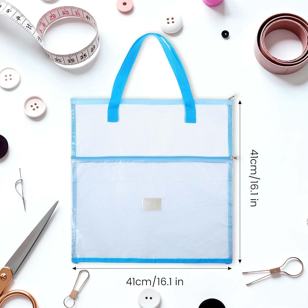 TIESOME "16.1x16.1inches Sew Project Bag, Sew Quilting Bag for Quilters and Crafter Portable and Organized Storage Mesh Vinyl Zipper Storage Pouch for Art Knitting Stitching