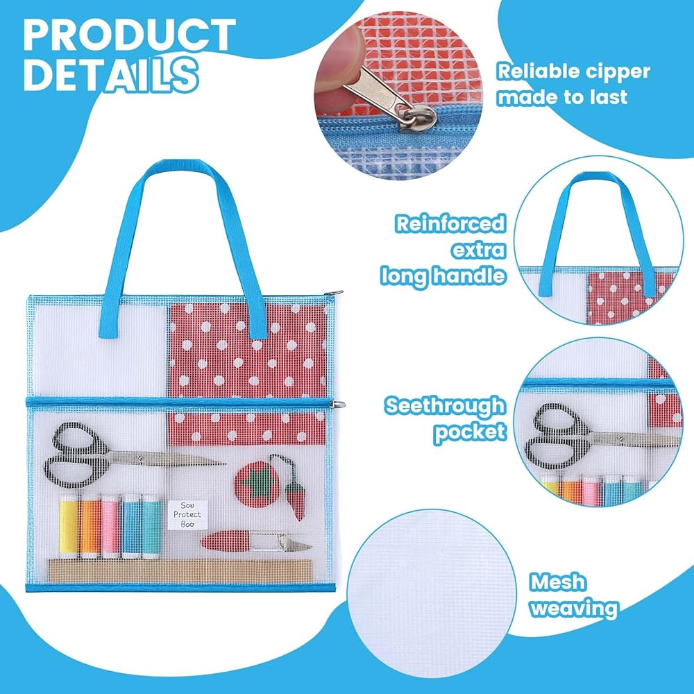 【Portable Design】Lightweight and easy to carry, this storage bag features sturdy handles for on-the-go convenience. The compact size of the sewing mesh bags with zipper fits seamlessly into travel bags or hangs neatly in workspaces, making it perfect for classes, workshops, or crafting at home. The balanced design ensures comfort even when fully loaded.