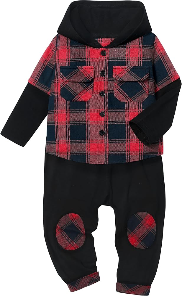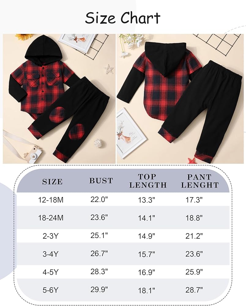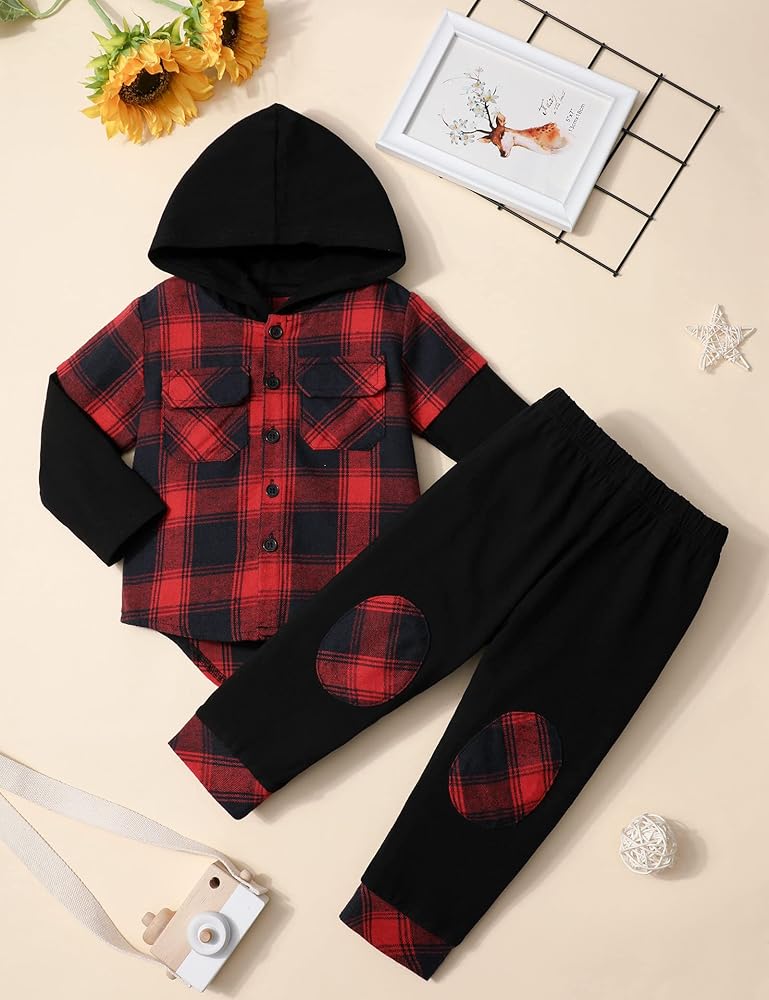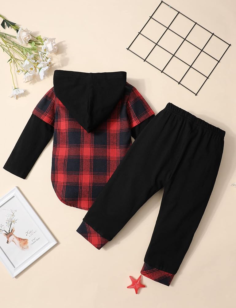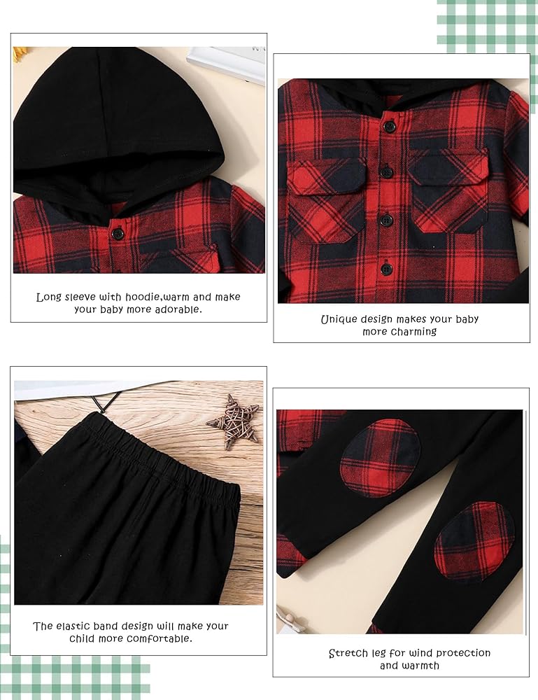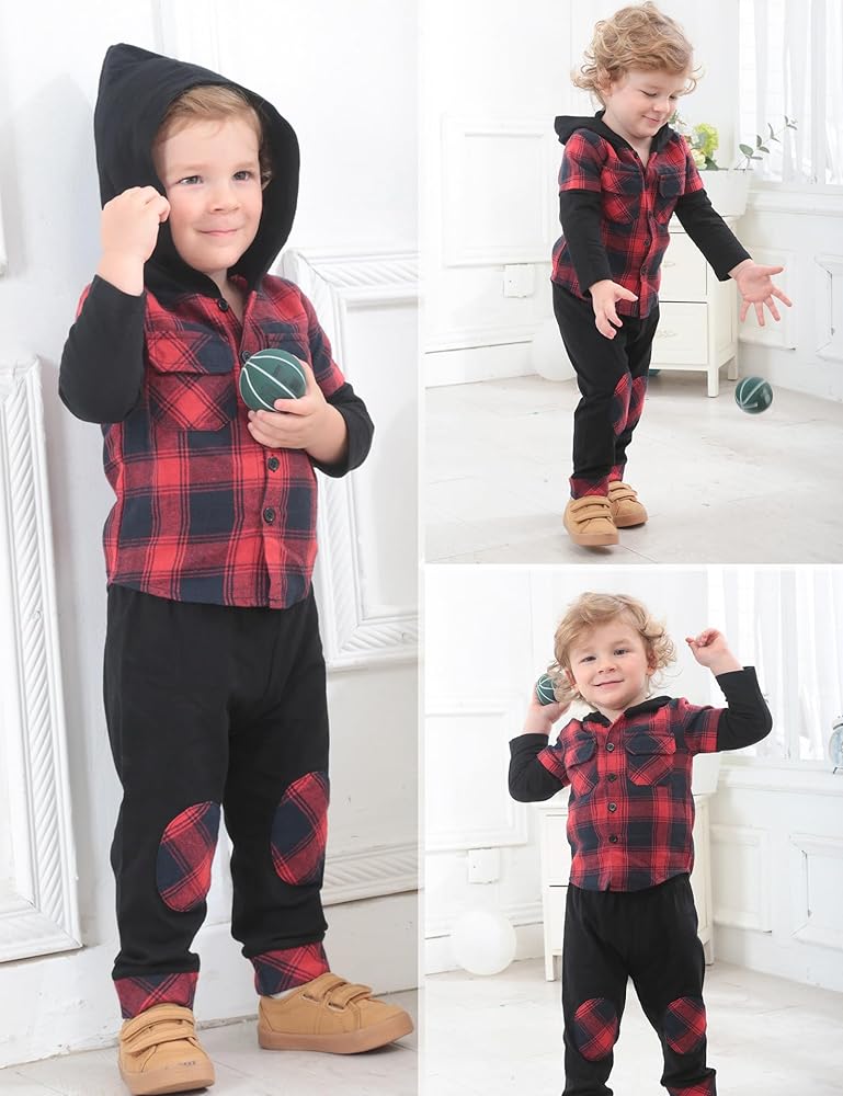 💝💝【Package Include】You will get 1 × Hoodie Shirt +1 × Plaid Pants. It will keep your boy comfortable and handsome this winter. Go and buy this outfits to your little boy, showing your love for him