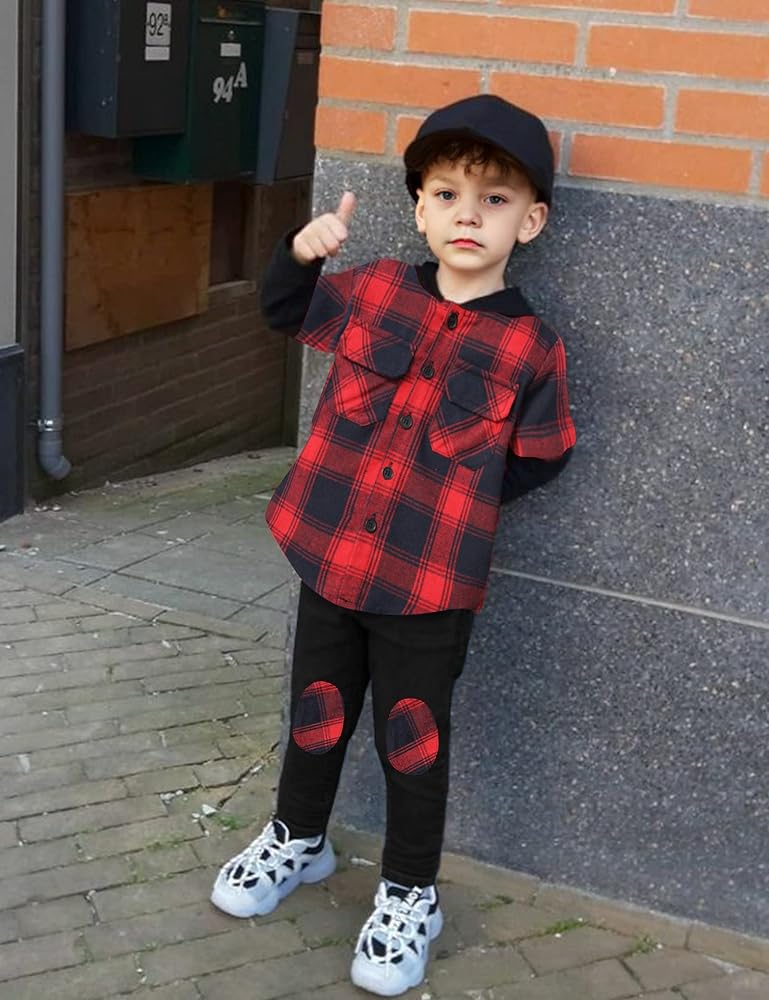 💝💝【Classical Design】Plaid toddler clothes for boys with quality button down design, easy to wear, cute hoodie design for best looking and warm. Wide elastic waistband pants, neither tight nor loose, cool and fashion kids clothes sets for outdoor/indoor activities